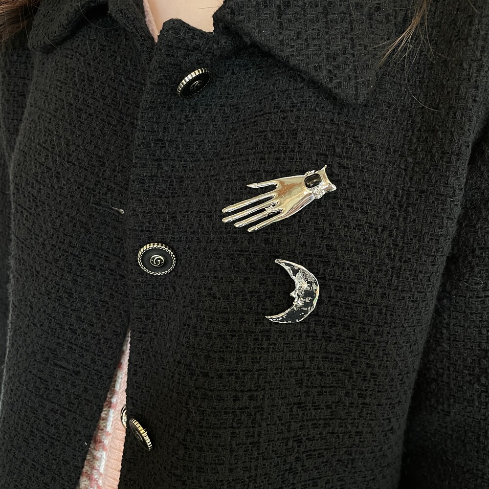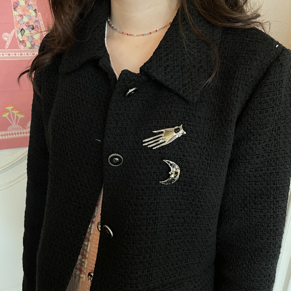 자켓, 가디건, 트위드 그리고 비니, 에코백, 가방에도 포인트로 달아주기 좋은 브로치입니다.