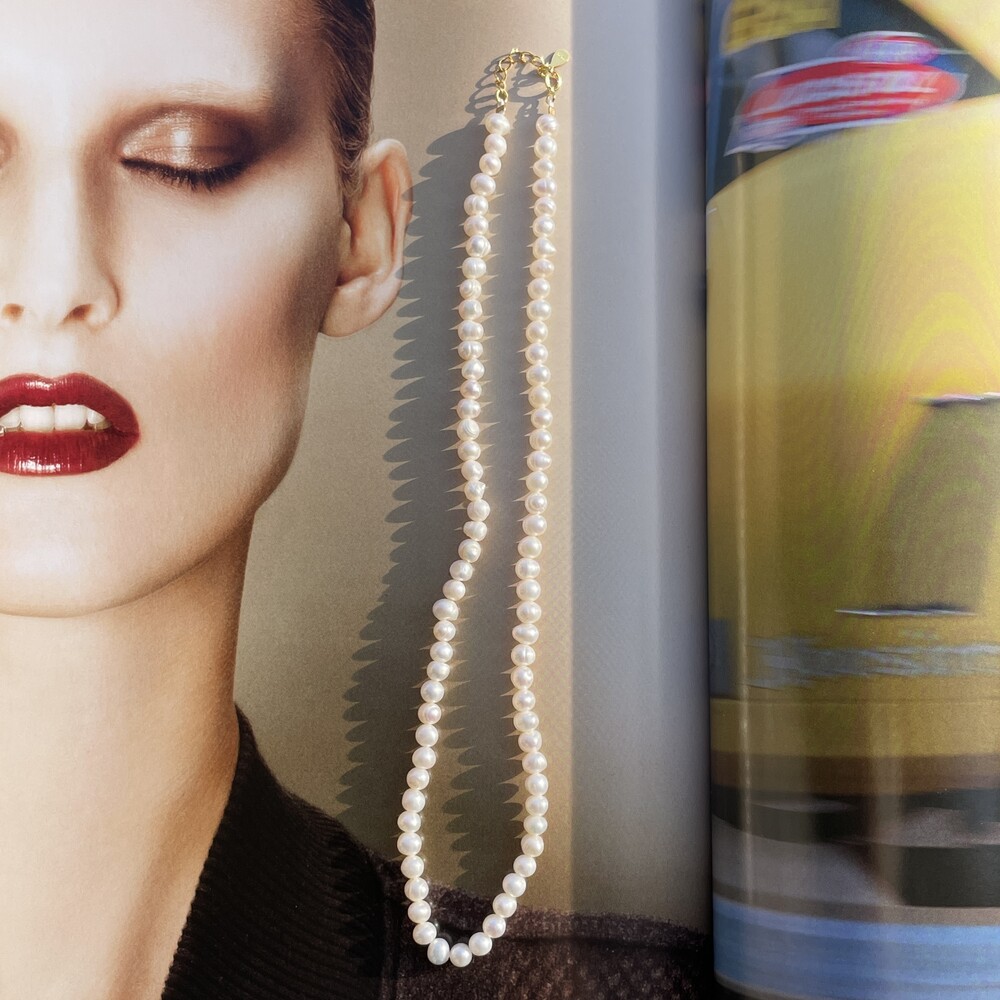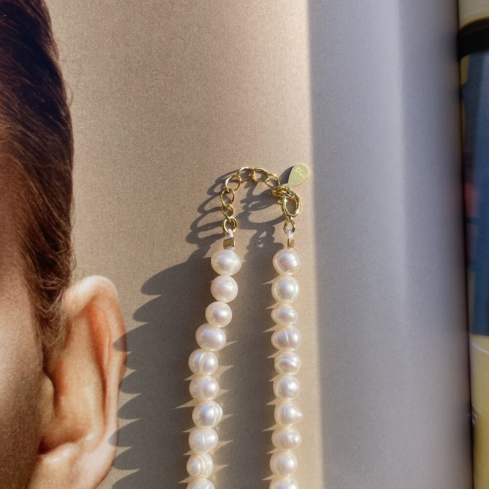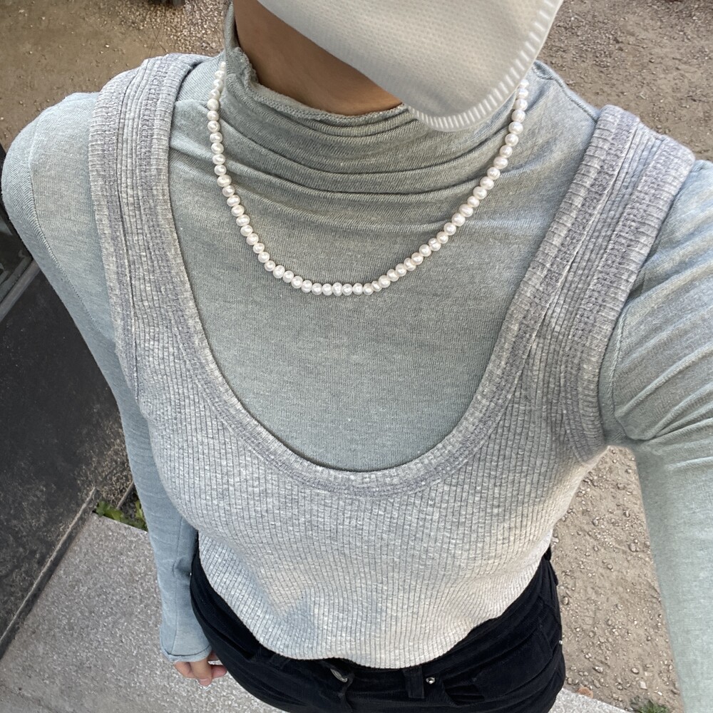 Dewy Pearl Necklace와 Natural Pearl Necklace 의 중간 사이즈로 포멀하거나 캐주얼한 스타일에도 잘 어울리는 담수진주 목걸이 입니다. ❥