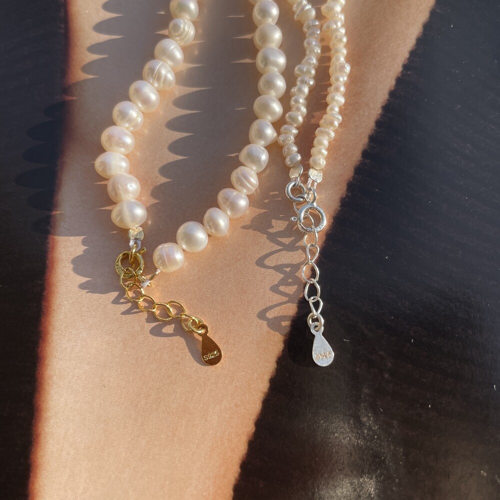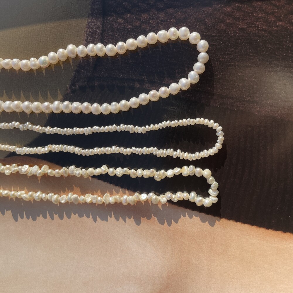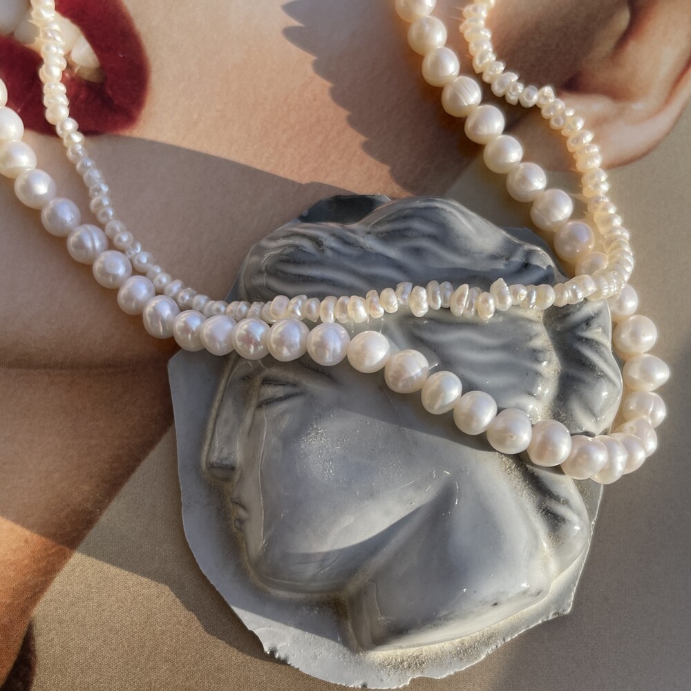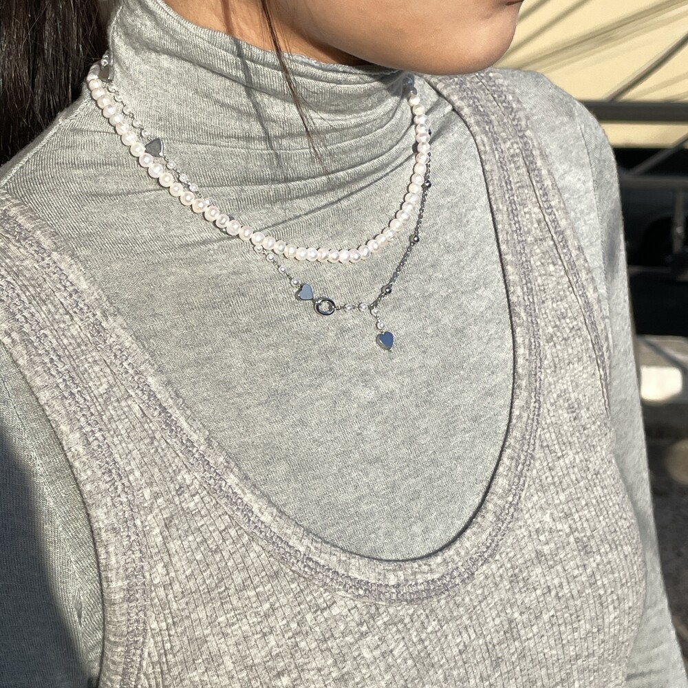Dewy Pearl Necklace와 Natural Pearl Necklace 의 중간 사이즈로 포멀하거나 캐주얼한 스타일에도 잘 어울리는 담수진주 목걸이 입니다. ❥