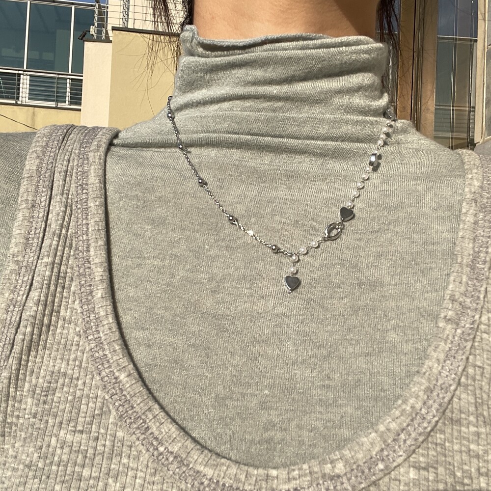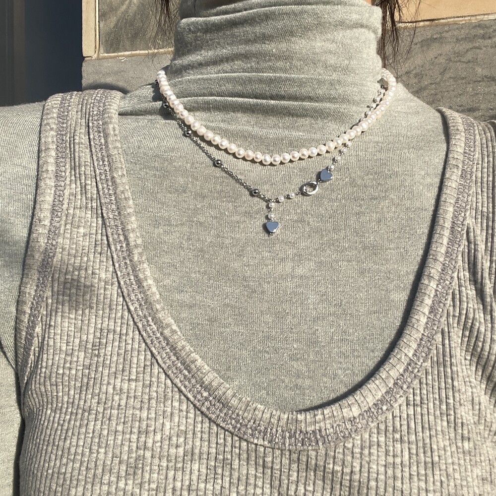 Odette Pearl Necklace & Half heart Necklace