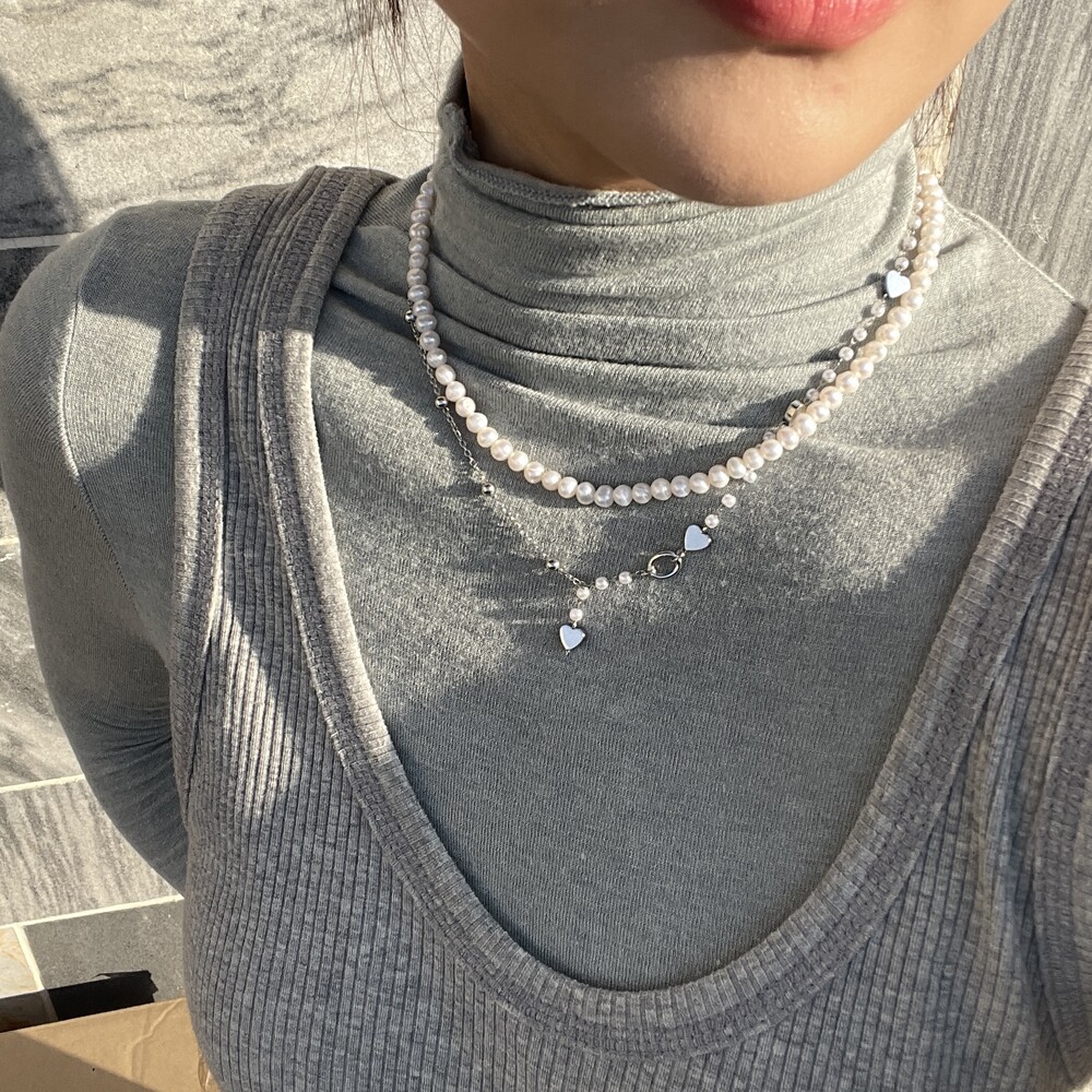 아래 착용컷 처럼 담수진주 목걸이와 같이 매치하셔도 좋을 것 같아요:)🖤
