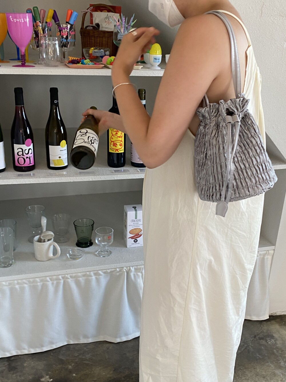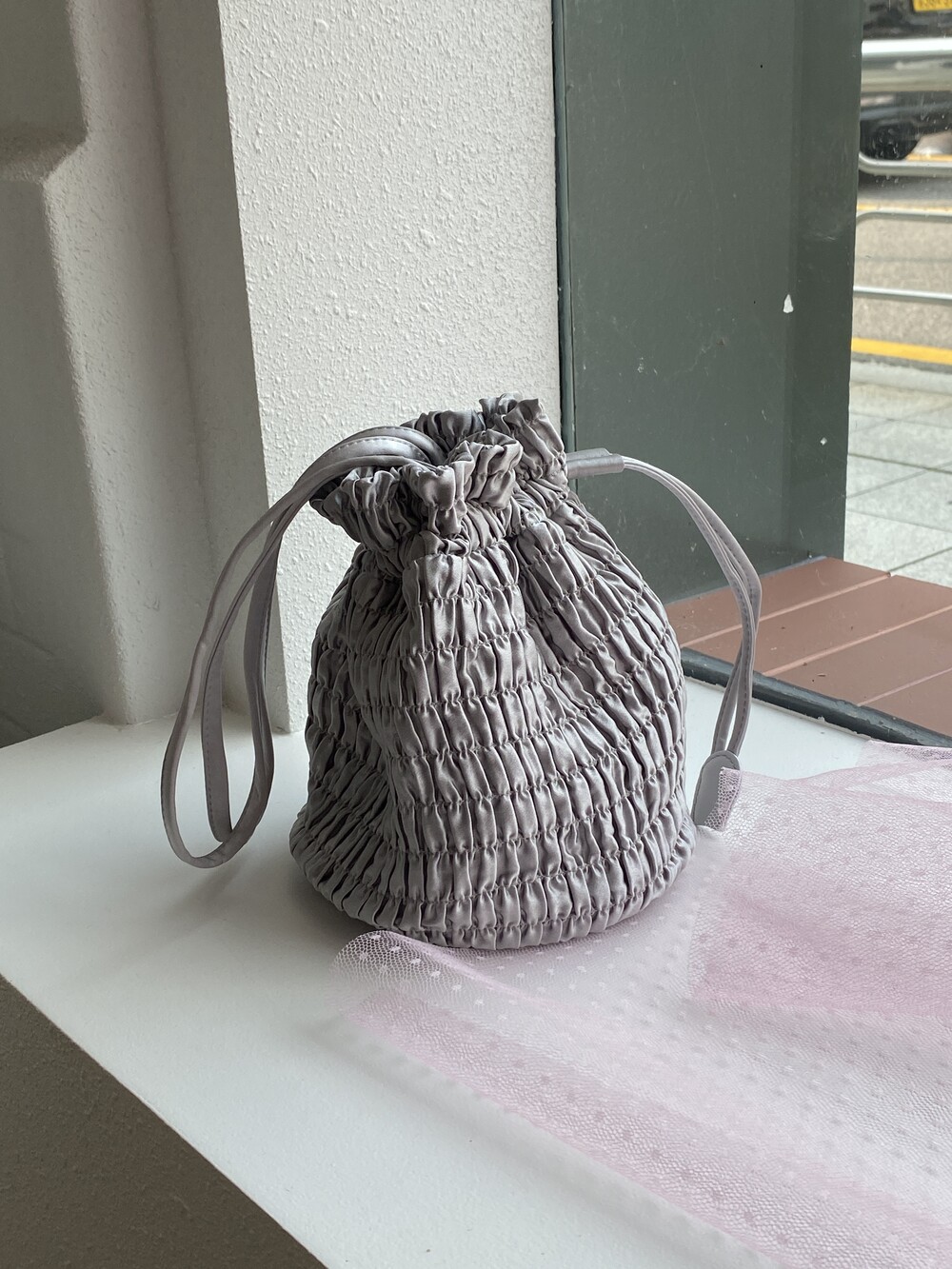 실크 플리츠 원단으로 만들어진 스트링 버킷백 Puff GIna Bag을 소개합니다.