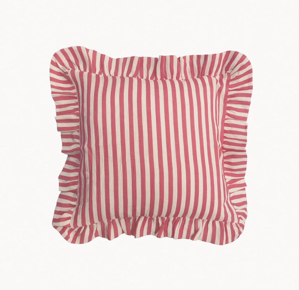 Amuse La Bouche - Cherry Red Candy Stripe Cushion Cover
