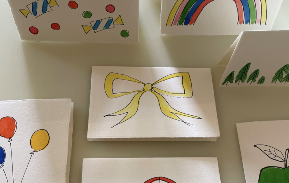 영국 핸드프린팅 브랜드 스크리블앤다우브 카드는 모든 공정이 디자이너인 Caroline Kent에 의해 수작업으로 제작됩니다.