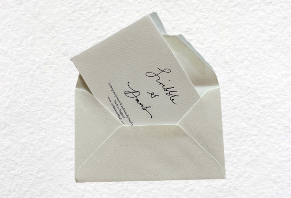 카드 소재는 이탈리아의 가장 오래된 제지소의 두꺼운 크림색 용지를 사용합니다.