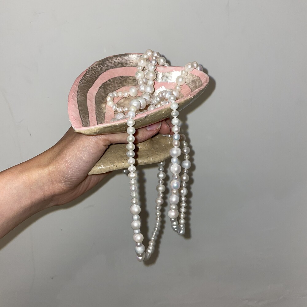 정형화된 진주가 아닌 자연스러운 모양과 크기를 가진 진주를 알알이 엮은 제품으로 자연스러운 멋을 더해주어 더욱 소장 가치가 높은 아이템입니다.