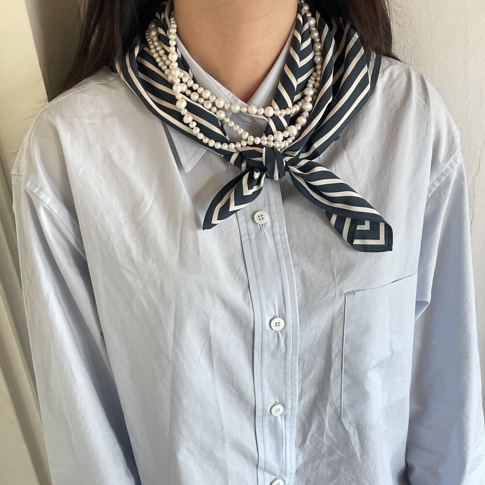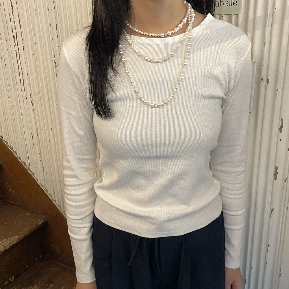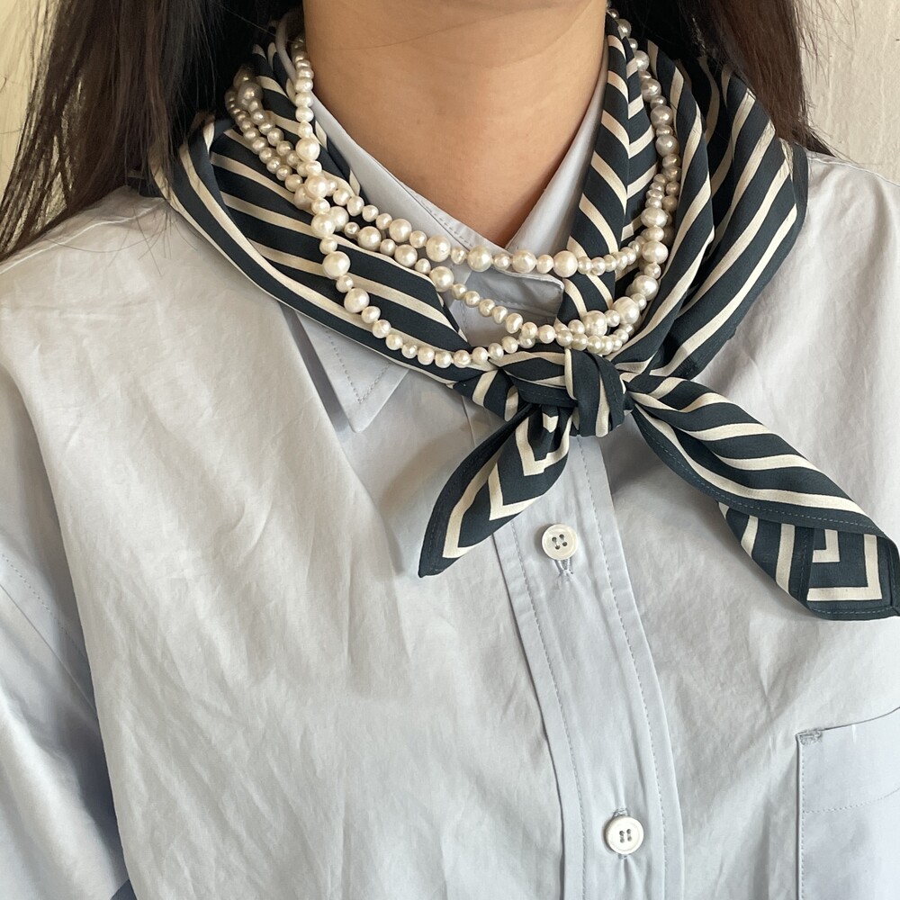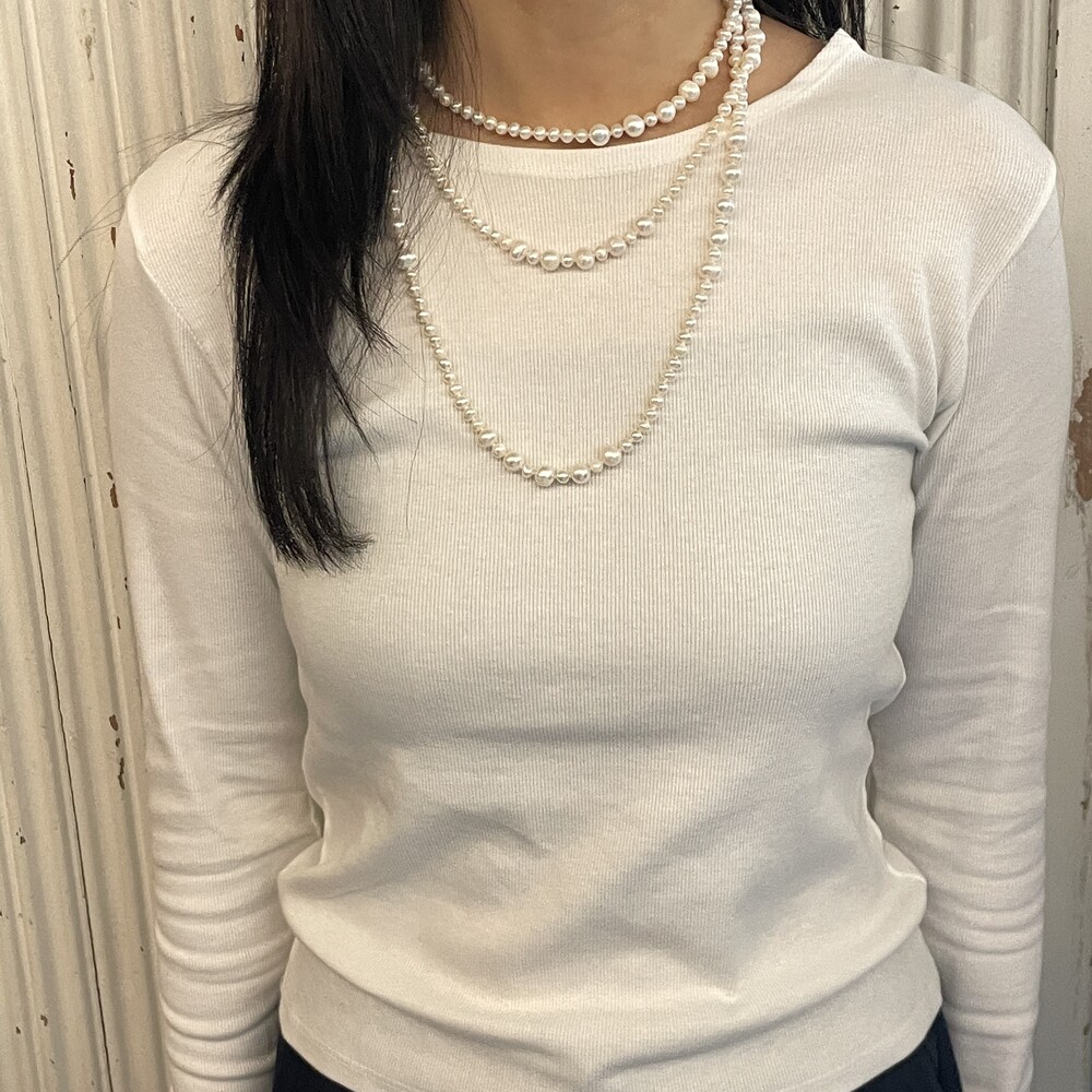 Margot Pearl Necklace보다 긴 기장감의 목걸이로 세 번 감아서 연출했을 때 가장 빛을 발했던 제품입니다.