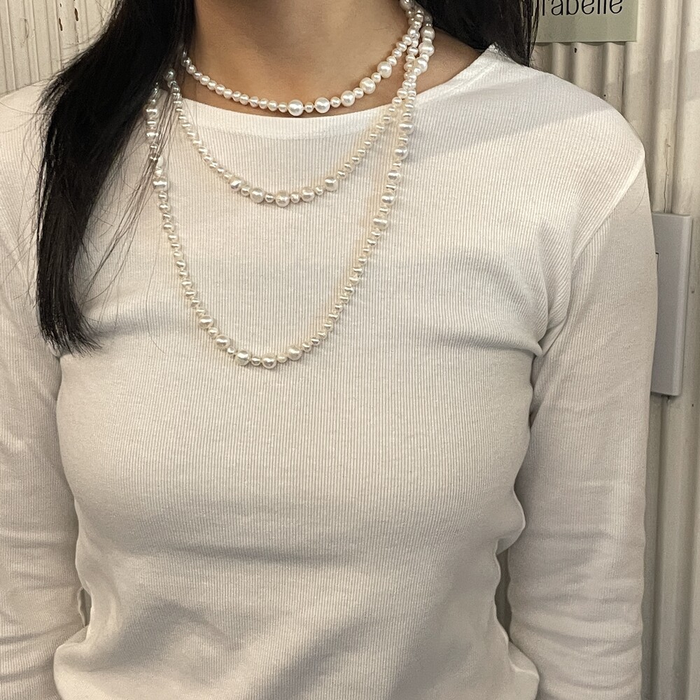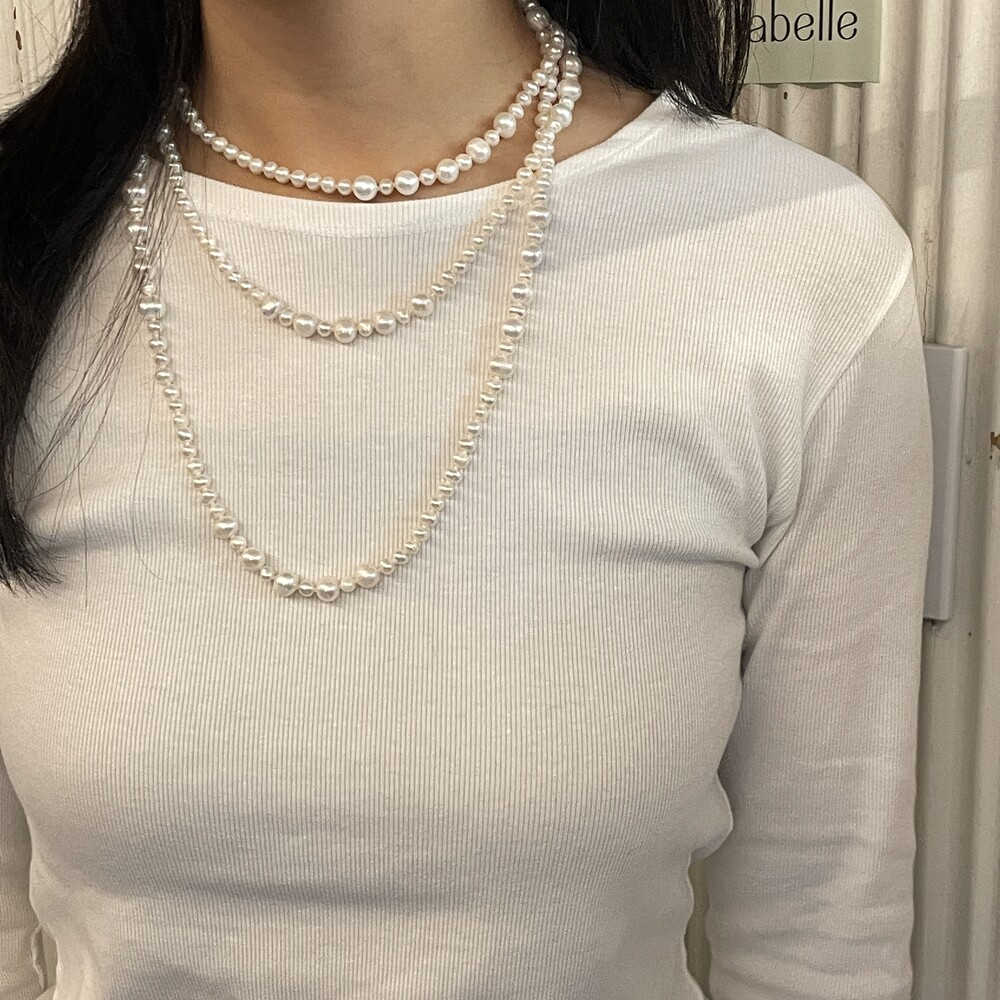 여러가지 크기의 진주들이 아름답게 엮여있는 Agathe Pearl Necklace 입니다.