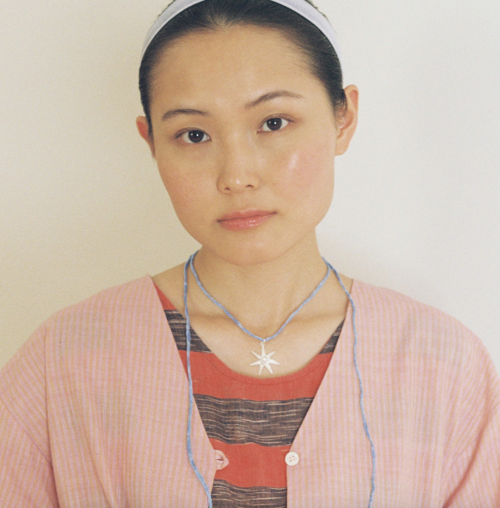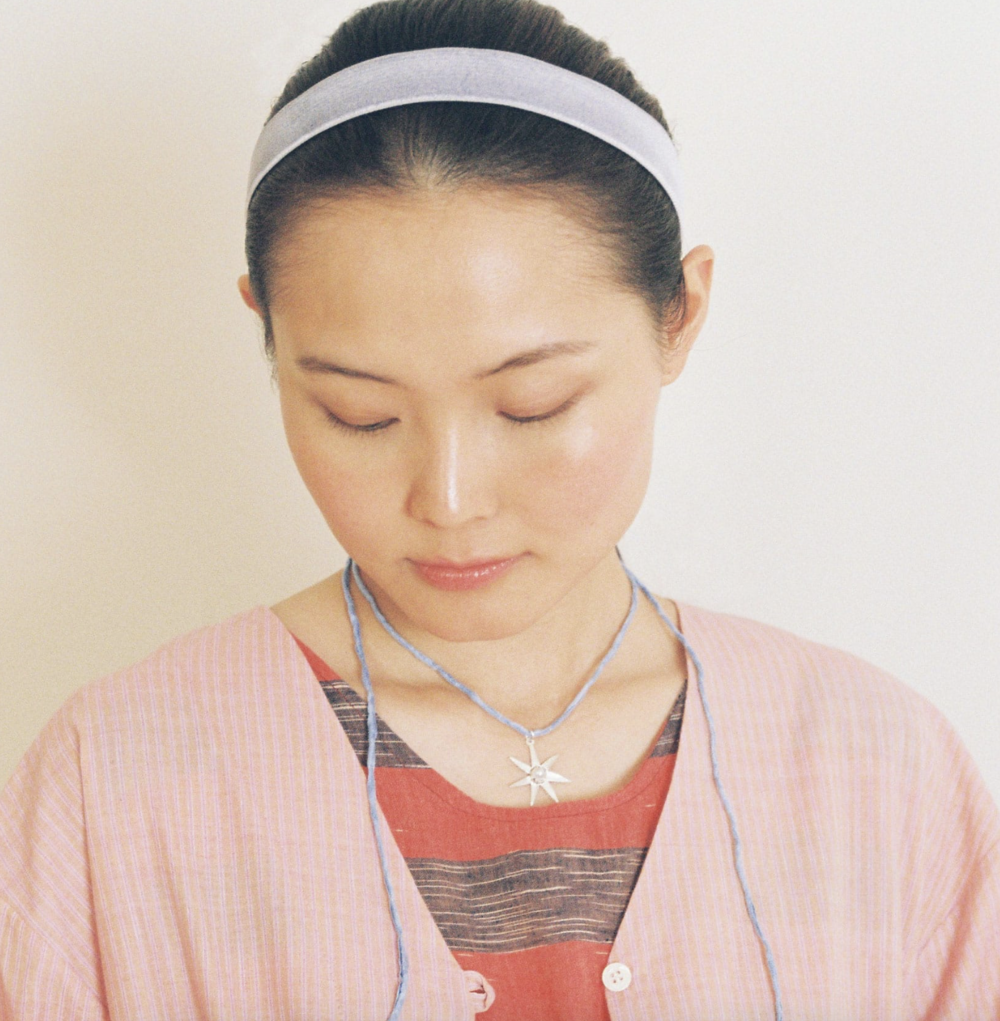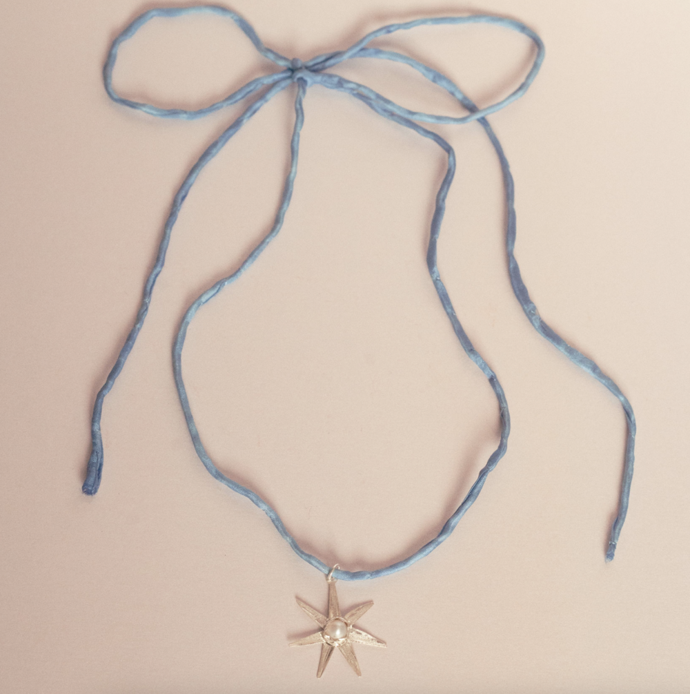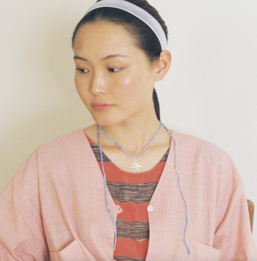 Material : Silver charm with natural pearl & natural-dyed silk cord