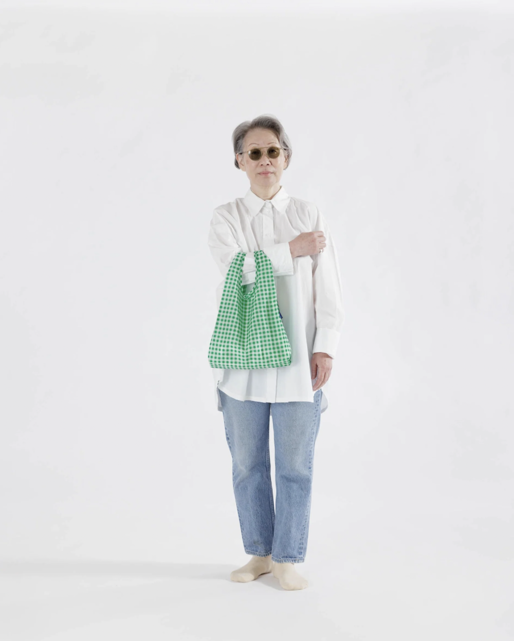 바쿠백은 비닐 봉투의 형태로 만들어져 견고하고 가벼우며 기존 에코백보다 많은 양을 물건을 넣을 수 있습니다.