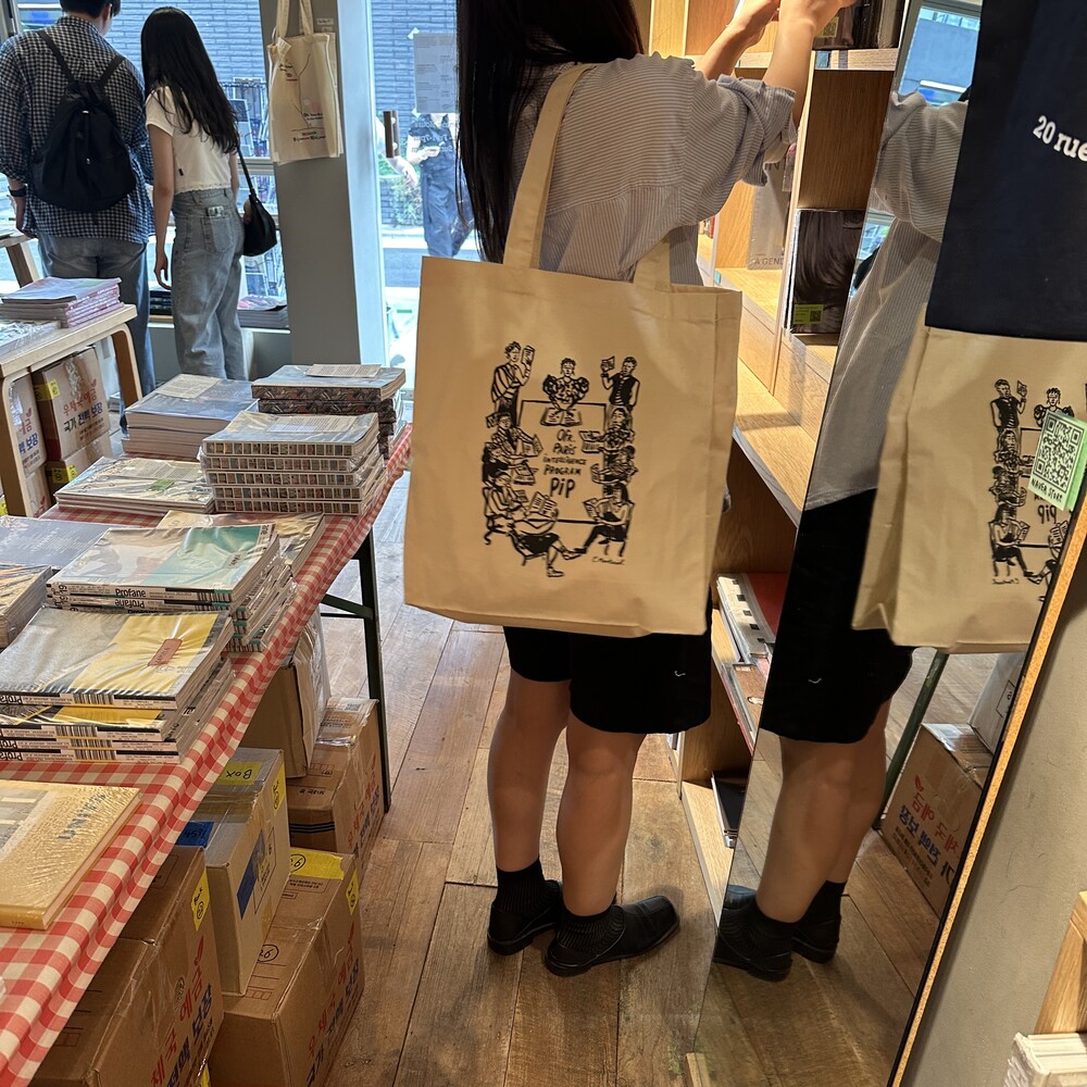 옆면과 바닥면이 있는 에코백으로 노트북이나 두꺼운 서적도 안정감 있게 담깁니다.