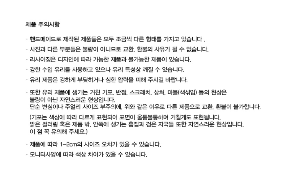 4) 앤틱 상품, 맞춤 제작 상품, 개인 오더 상품의 경우 교환/반품 불가