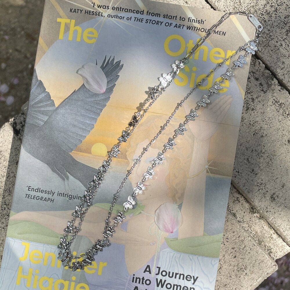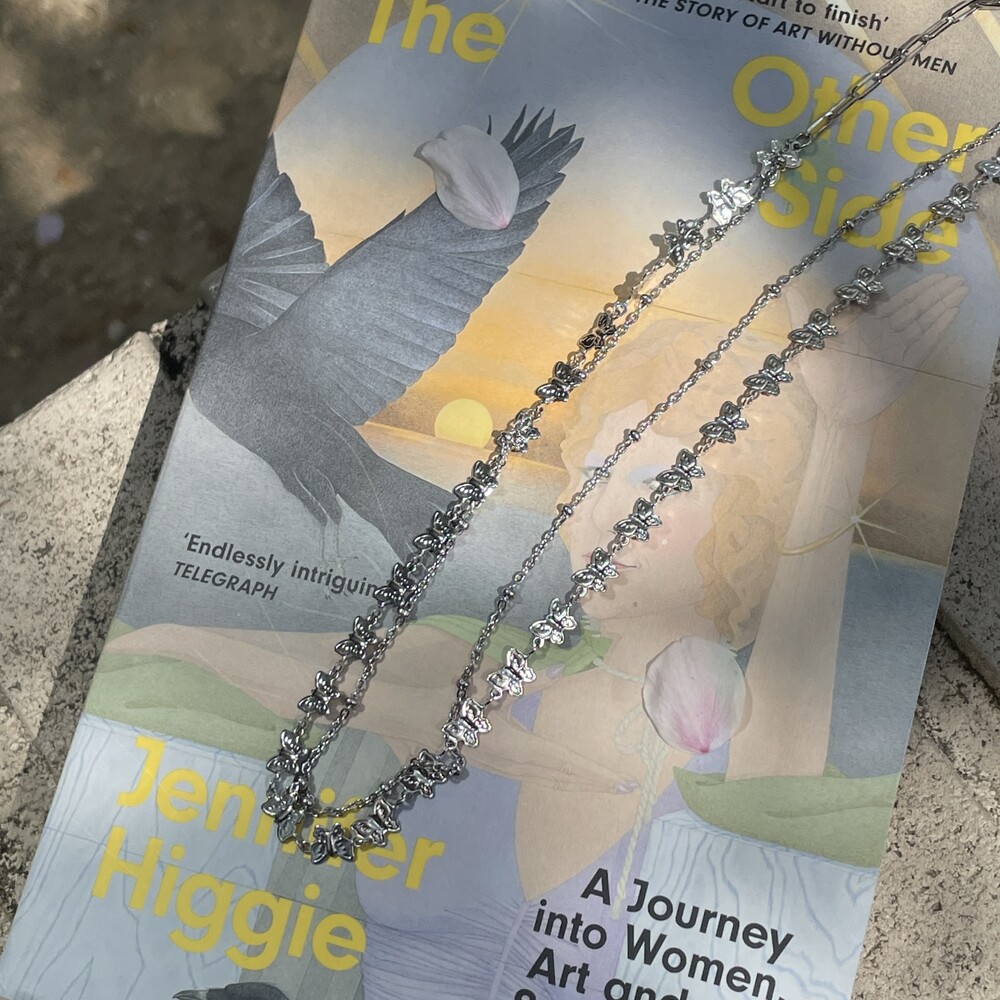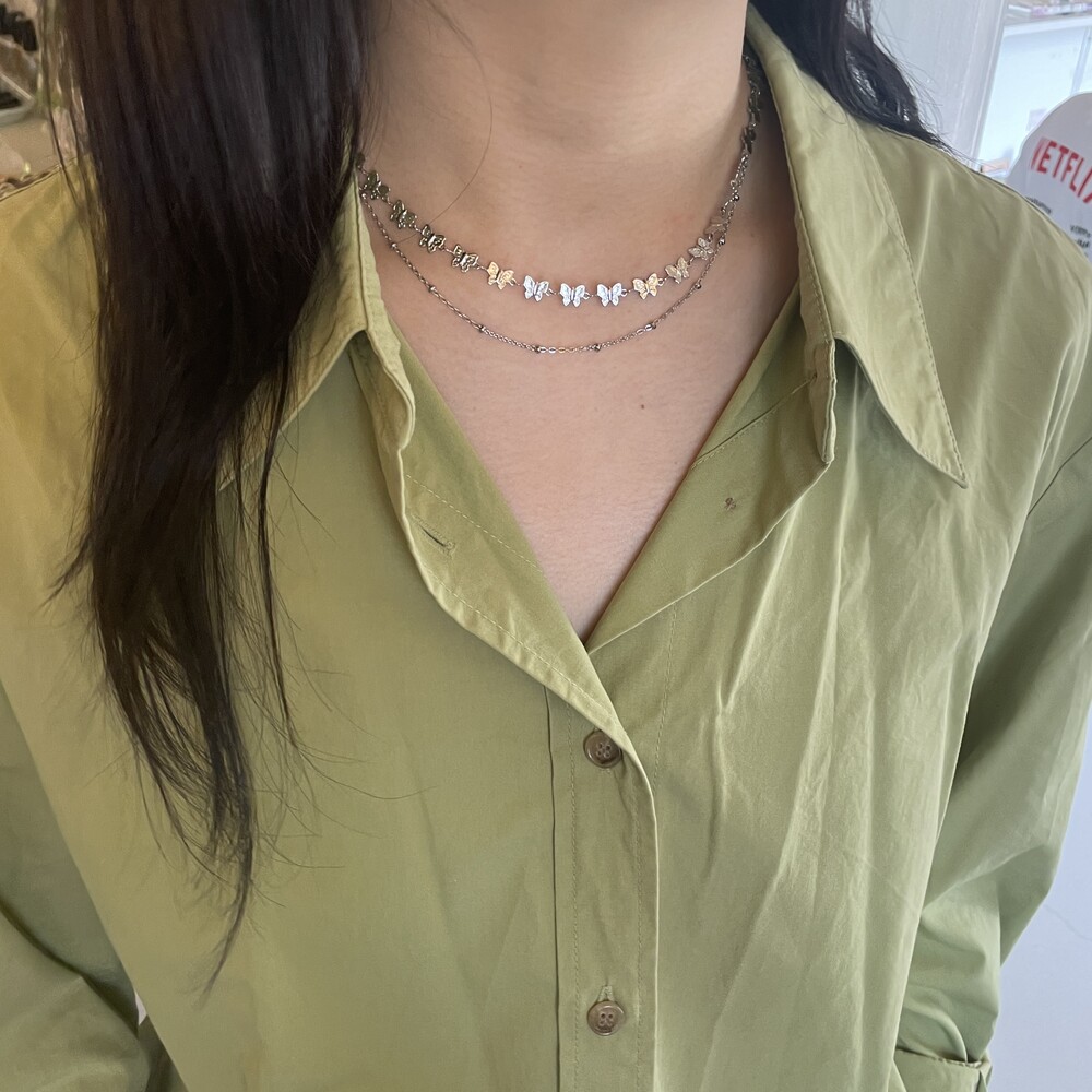 실버 색상의 나비참이 포인트로 더해진 레이러드 목걸이로 가벼운 옷차림에 포인트 주기 좋은 아이템입니다!🦋