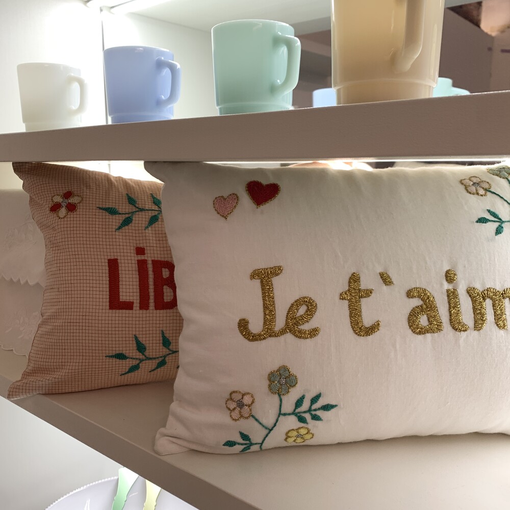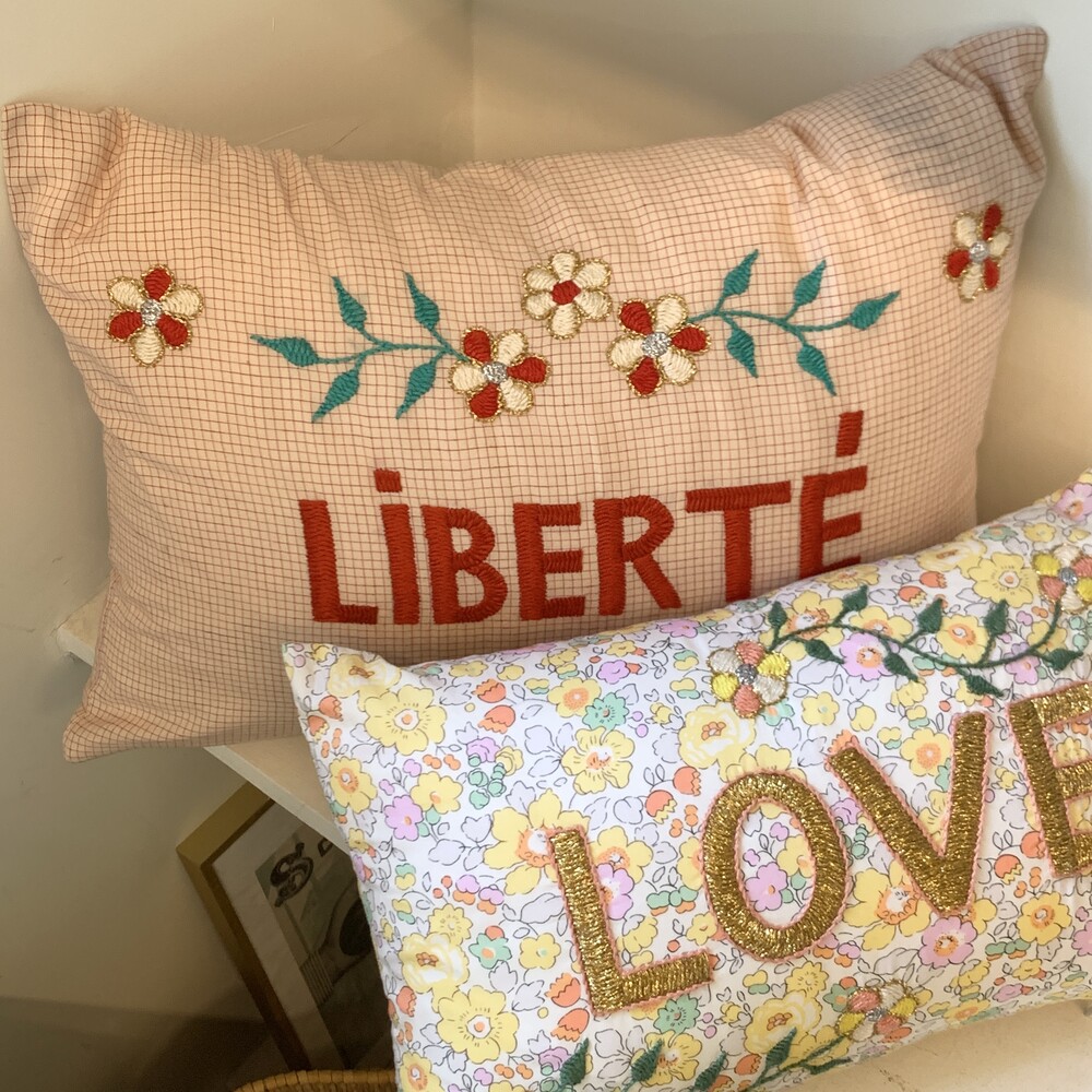 리버티원단과 프렌치 플로랄 원단으로 만들어진 쿠션입니다.
