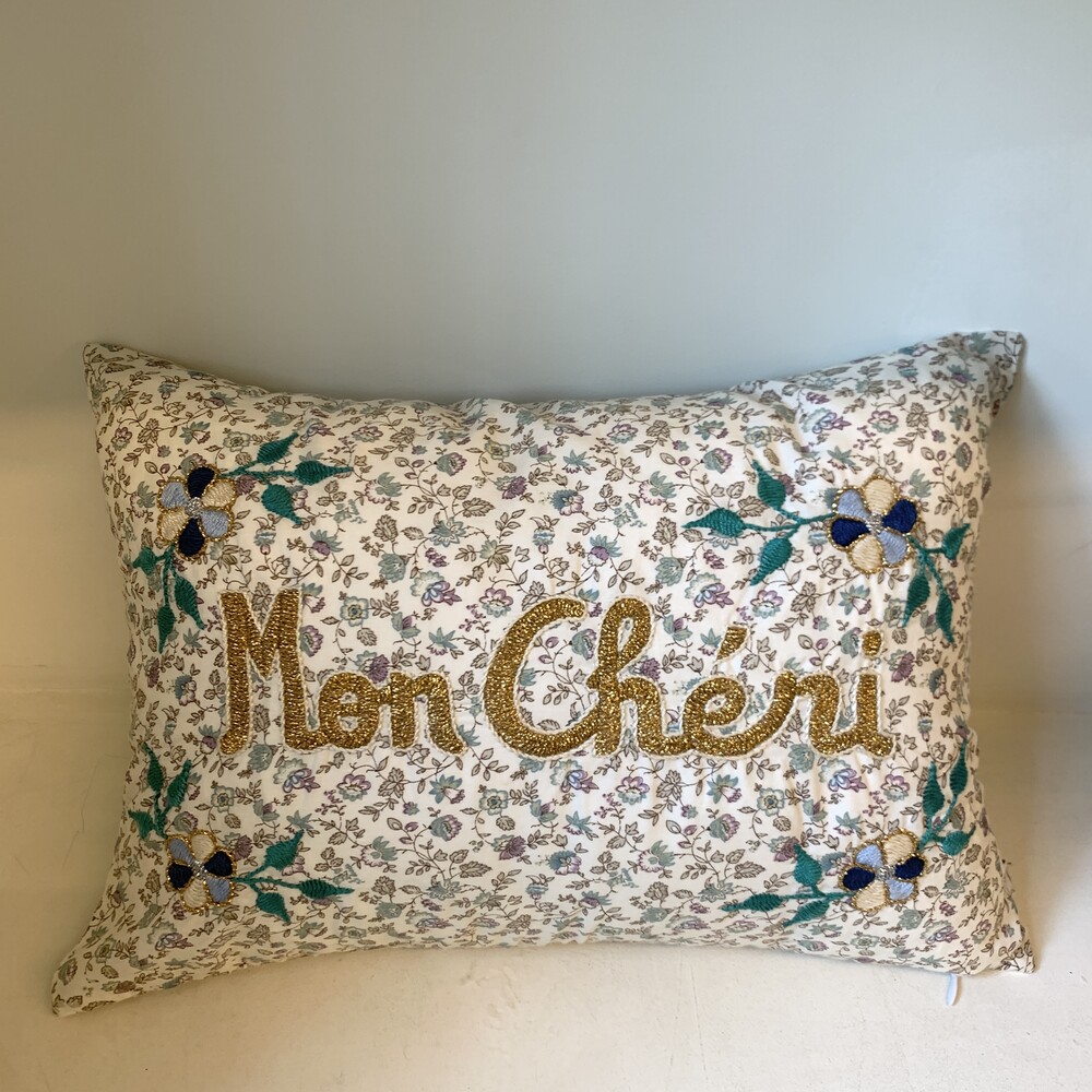 리버티원단과 프렌치 플로랄 원단으로 만들어진 쿠션입니다.