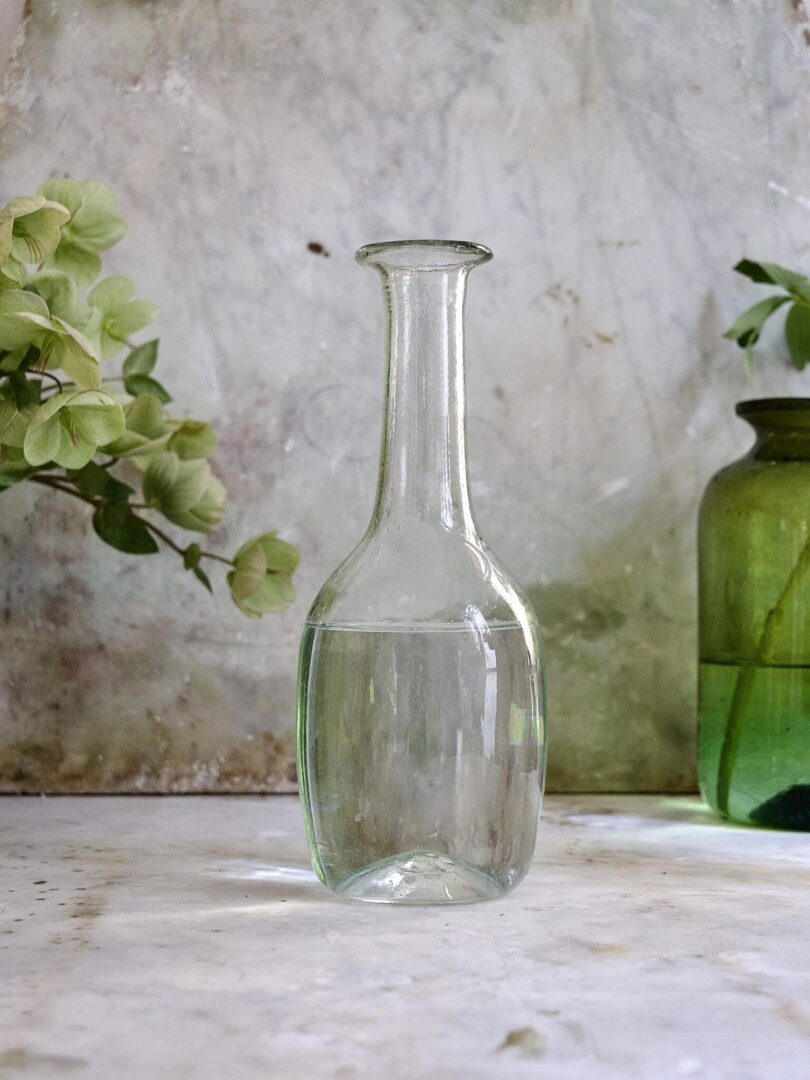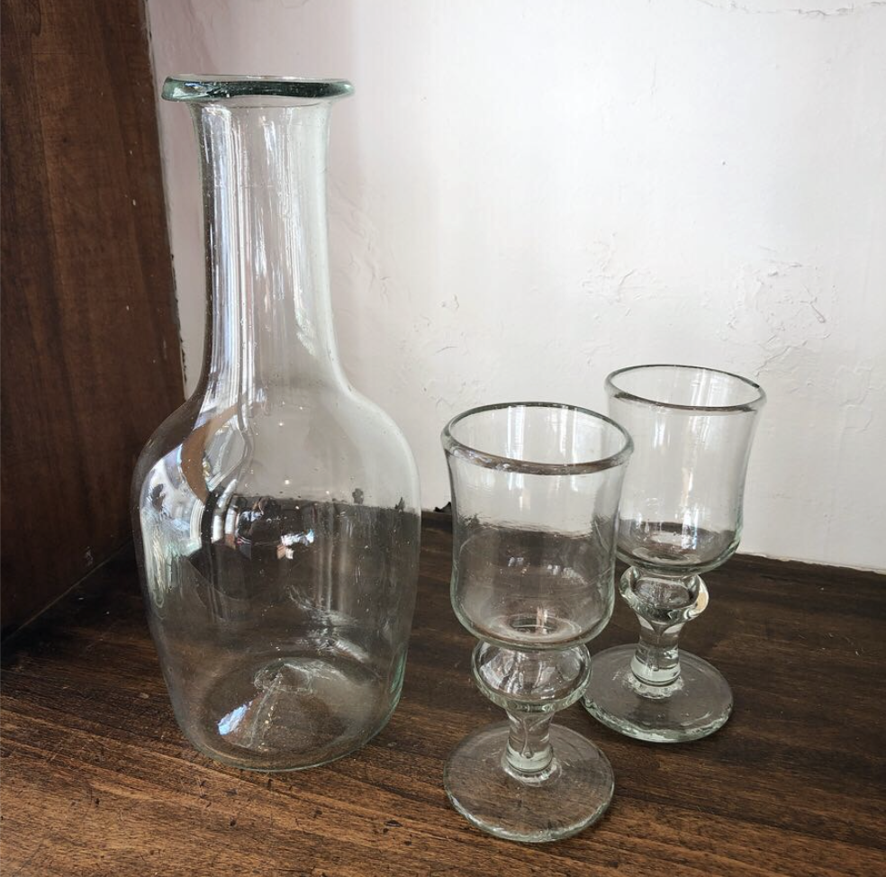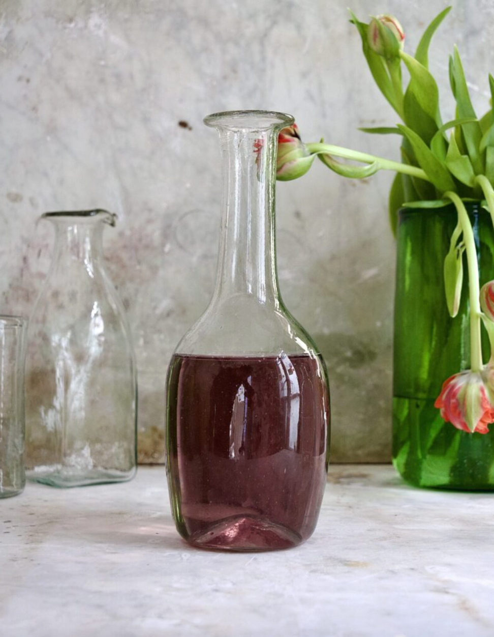 투명하고 둥근 바디에 긴 목과 평평한 테두리가 특징인 이 카라페는 좋아하는 음료를 따라 마시기에 안성맞춤이며, 숙련된 유리 공예가들이 재활용 유리를 입으로 불어 제작되었습니다.
