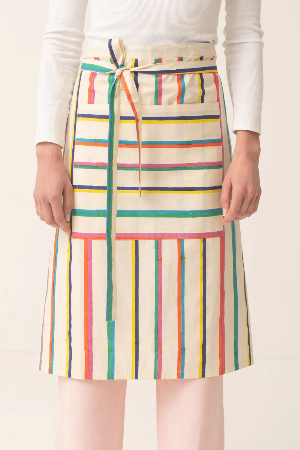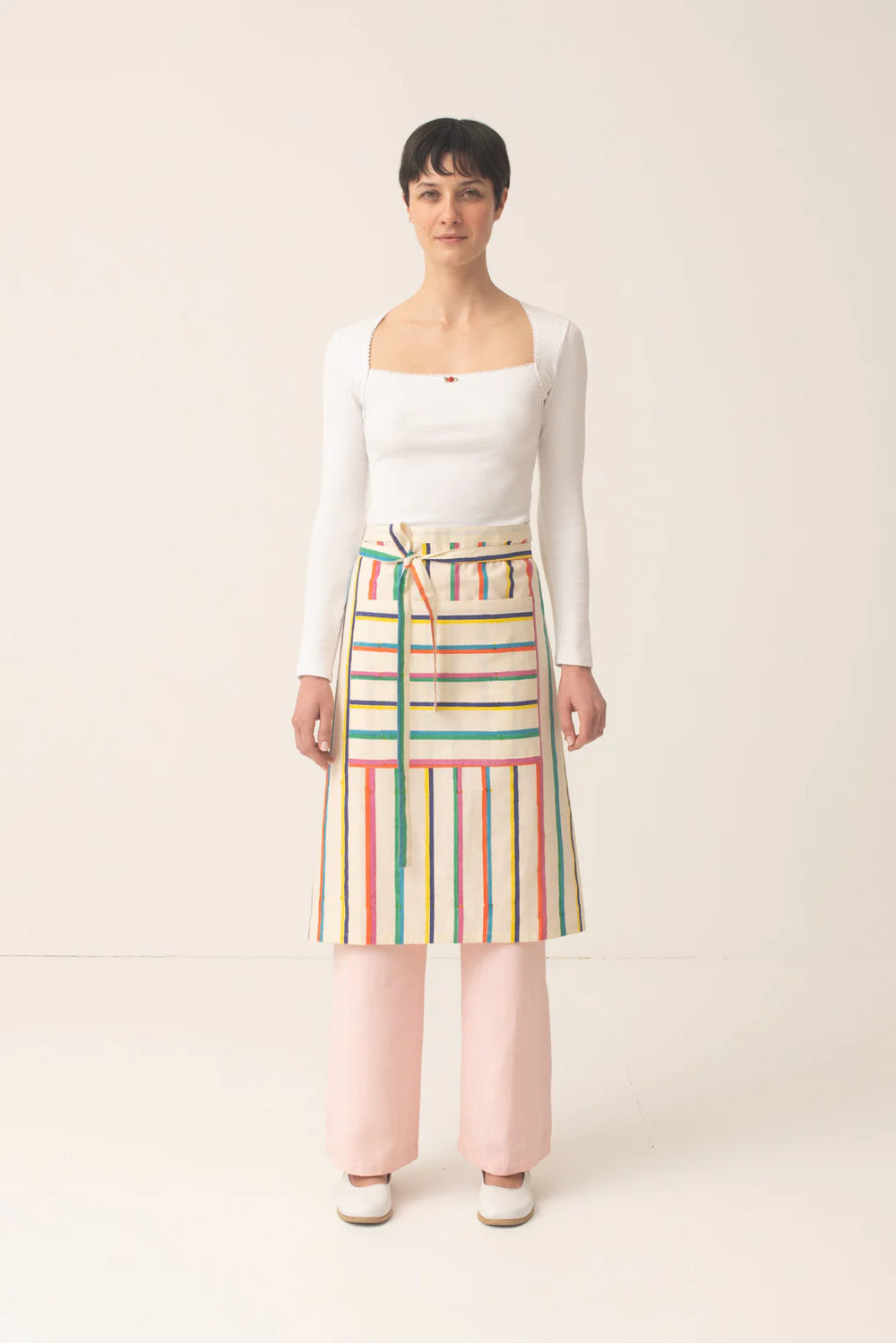 유기농 면 소재의 Mouron 앞치마는 인도 자이푸르의 전통 목판화 기법을 사용하여 수작업으로 제작되었습니다.