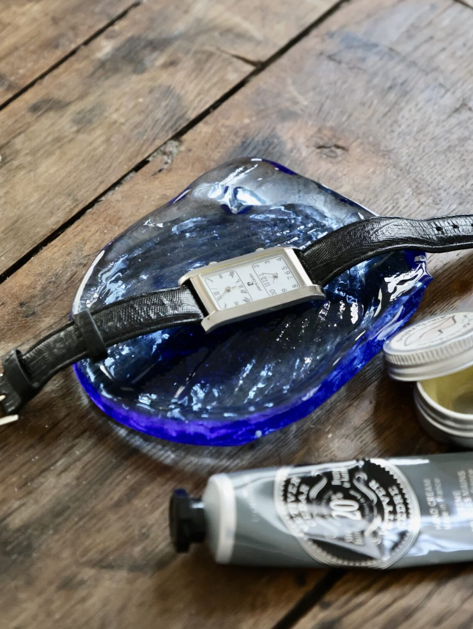 100% 재활용 유리를 사용하여 수작업으로 제작한 이 제품은 숟가락 받침과 달리 속이 비어 있어서 식기를 올려놓기 좋을 뿐만 아니라 올리브, 소금, 레몬 조각 등을 담는 데도 적합합니다.