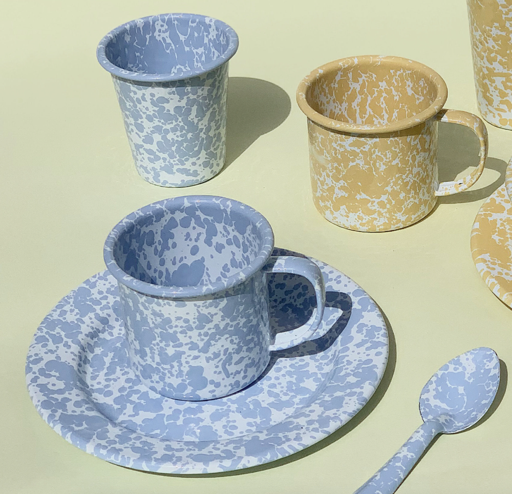 법랑이라는 클래식한 소재를 가지고 마블 패턴을 입힌 모던한 디자인이 특징입니다.