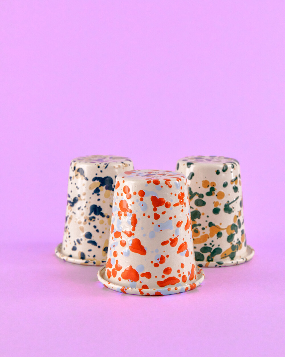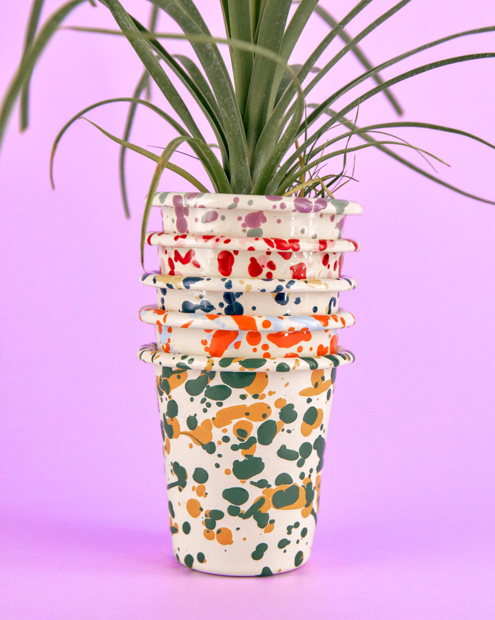 법랑이라는 클래식한 소재를 가지고 마블 패턴을 입힌 모던한 디자인이 특징입니다.