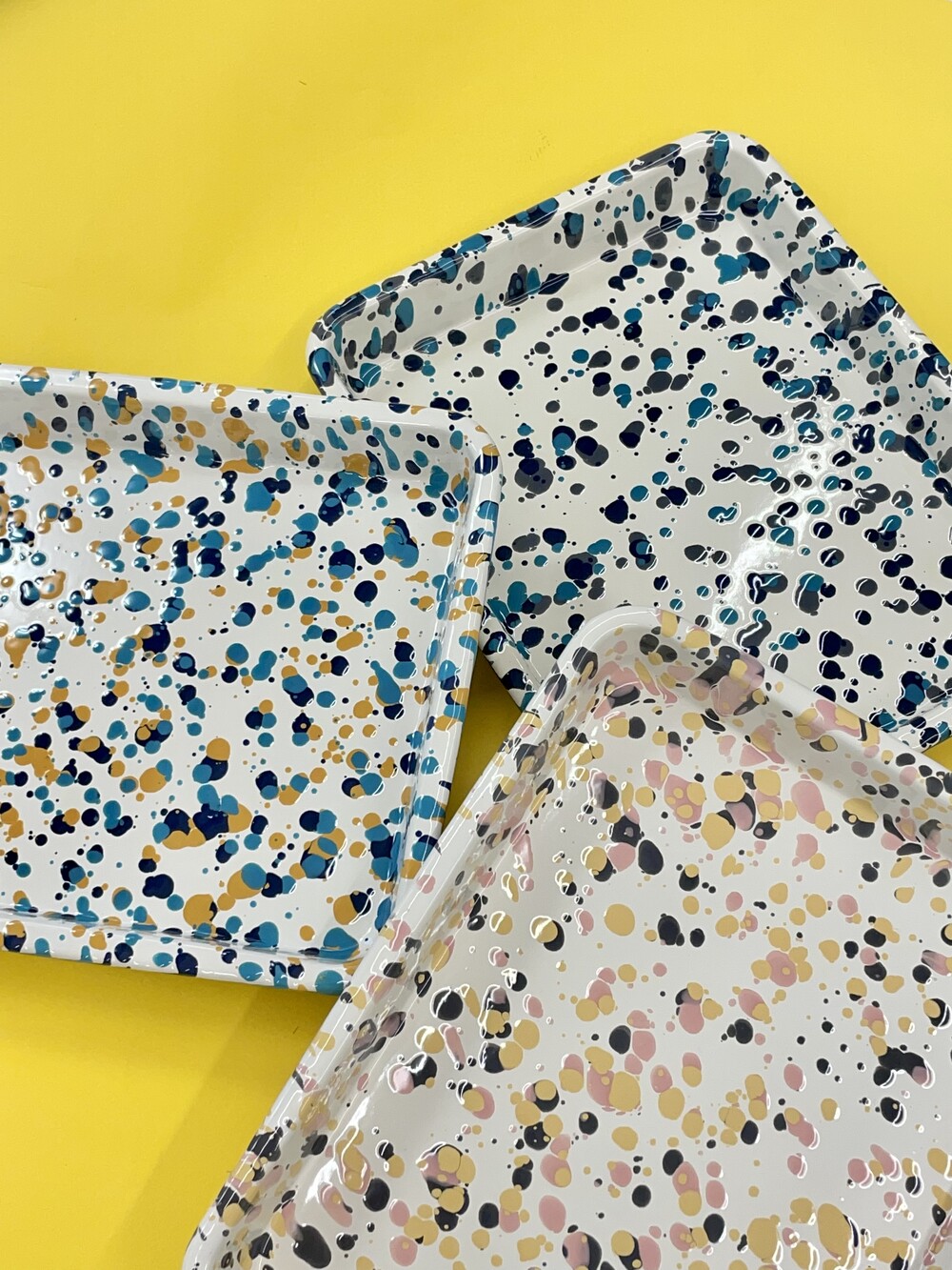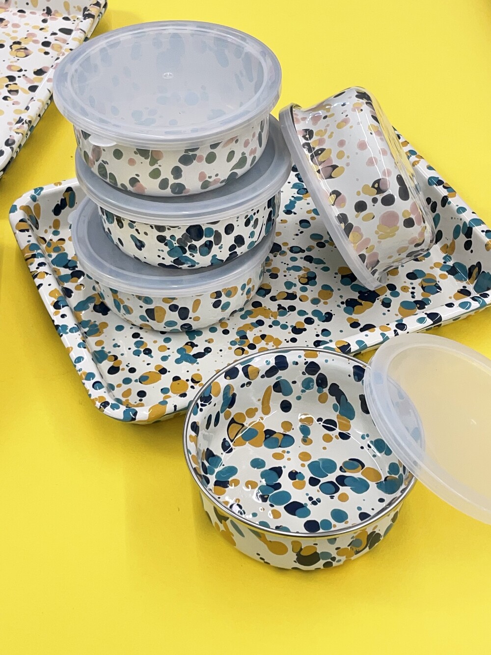 법랑이라는 클래식한 소재를 가지고 마블 패턴을 입힌 모던한 디자인이 특징입니다.