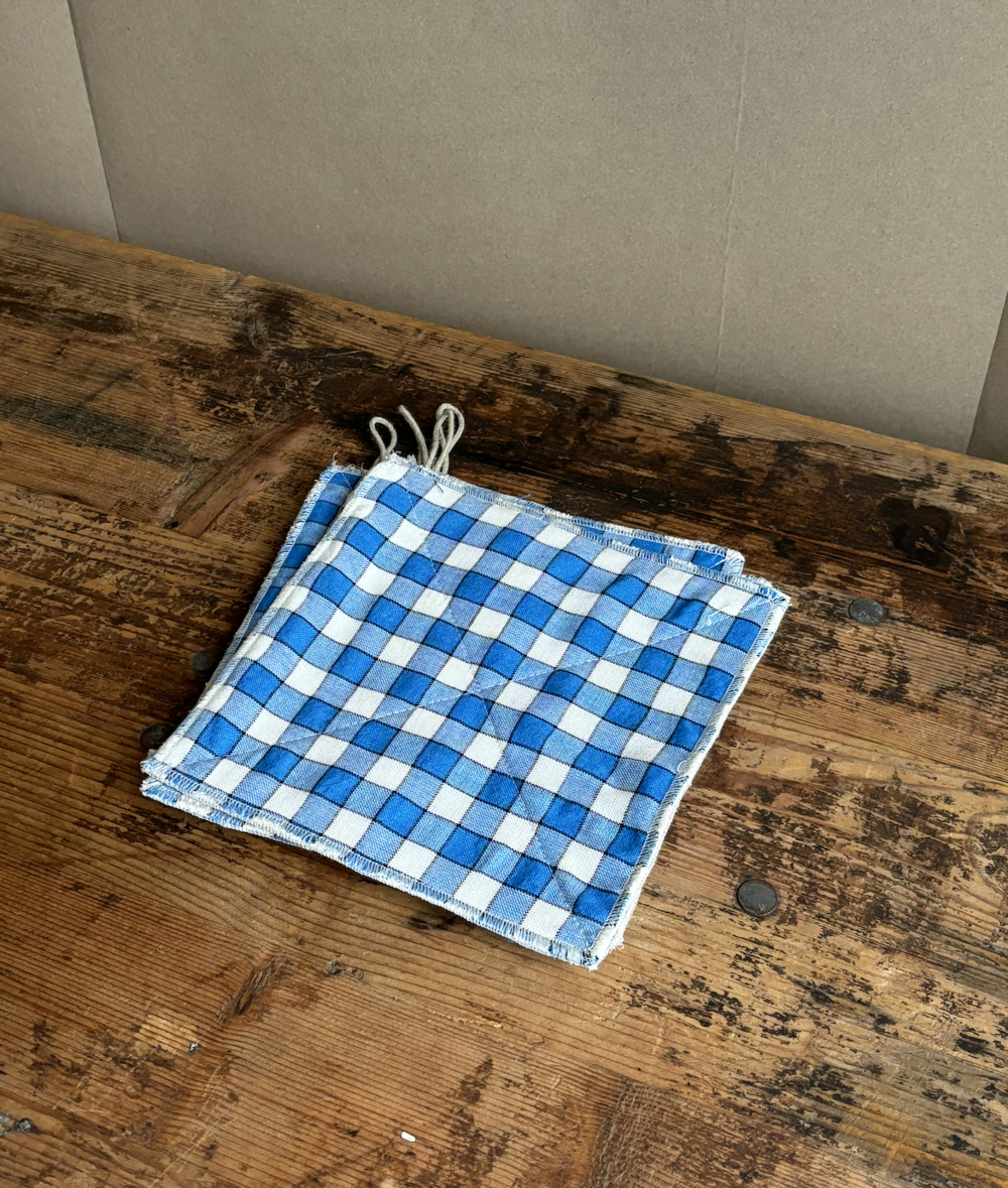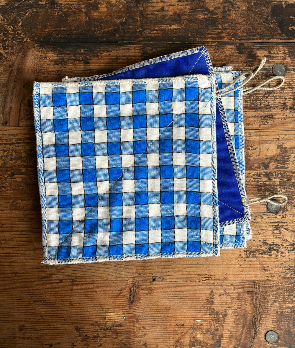 Found a few rolls of this beautiful hard blue canvas. Diverted this fabric from its primary destination, which is work clothing, to bring it into the world of the home.