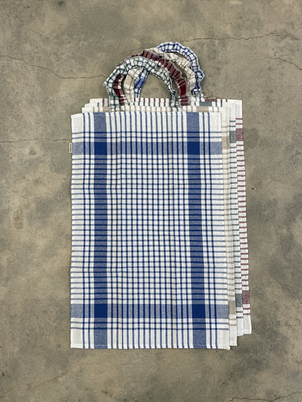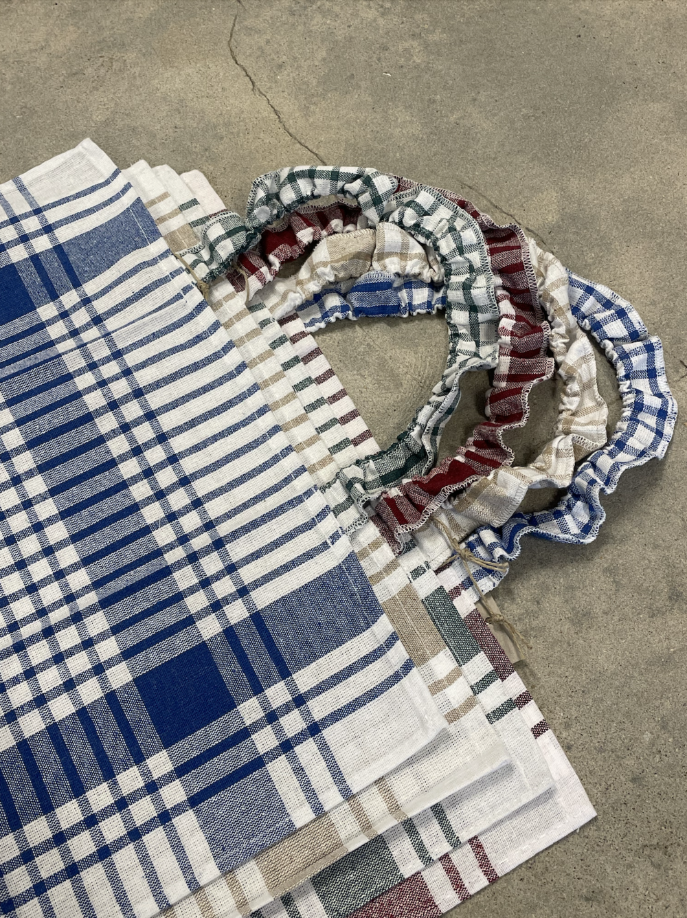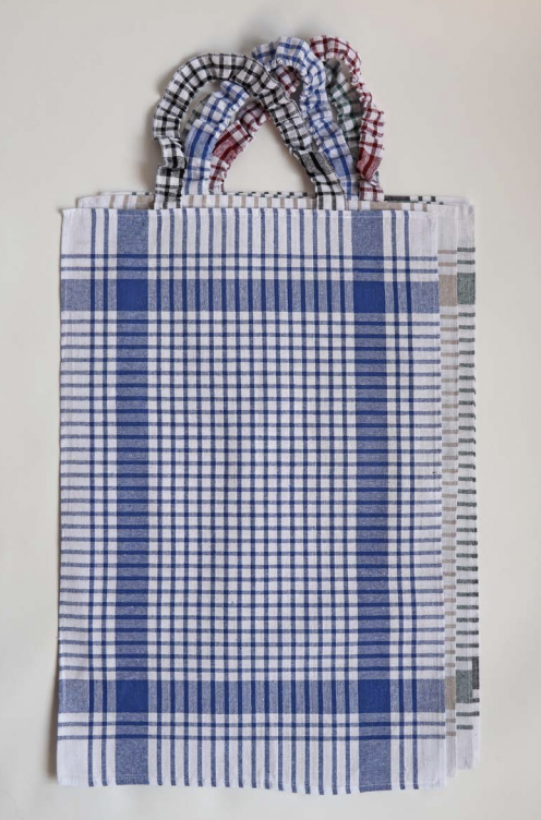 Seize a stock of tea towels in overproduction and mix colours.