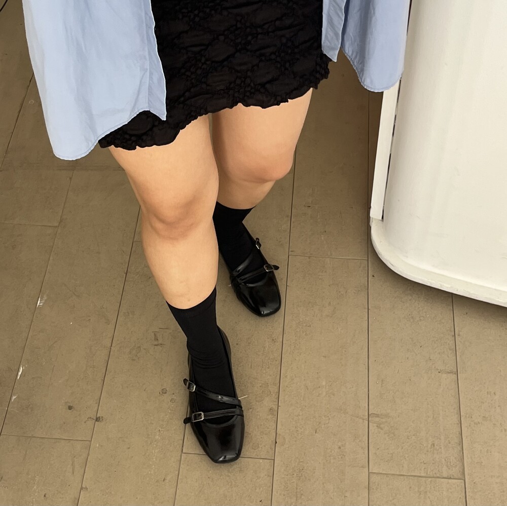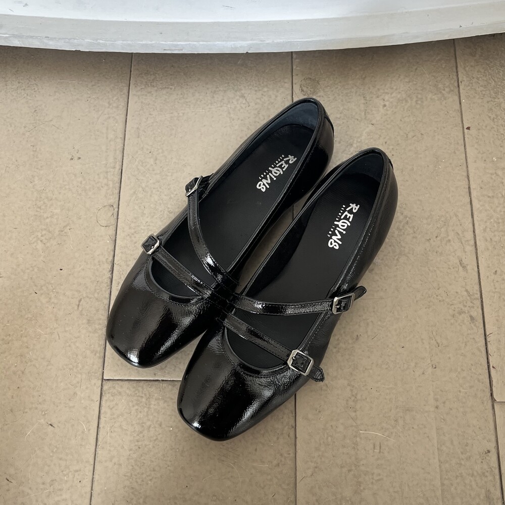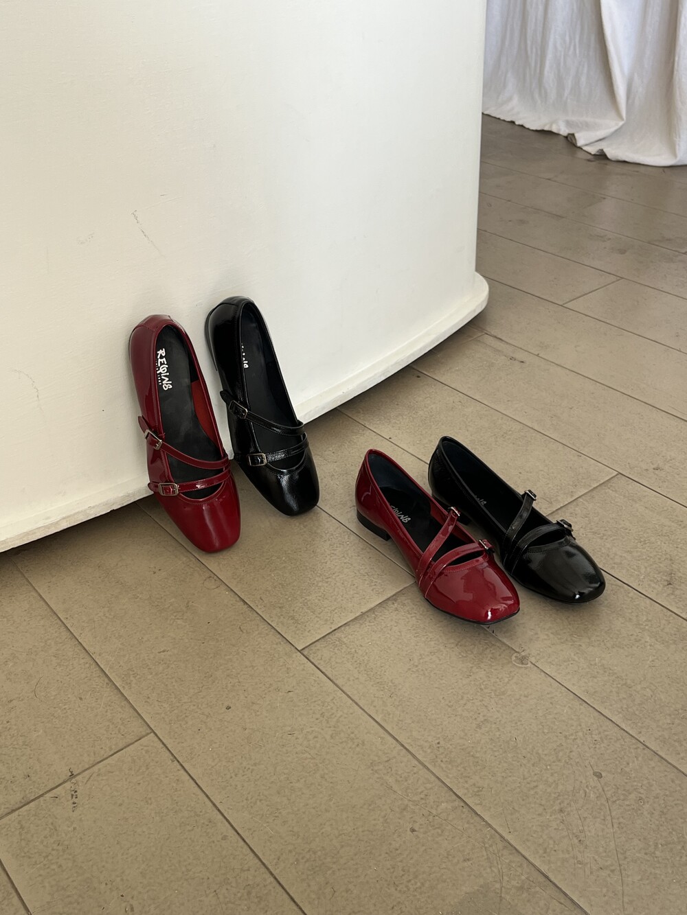 사랑스러운 무드의 투스트랩 플랫슈즈입니다.