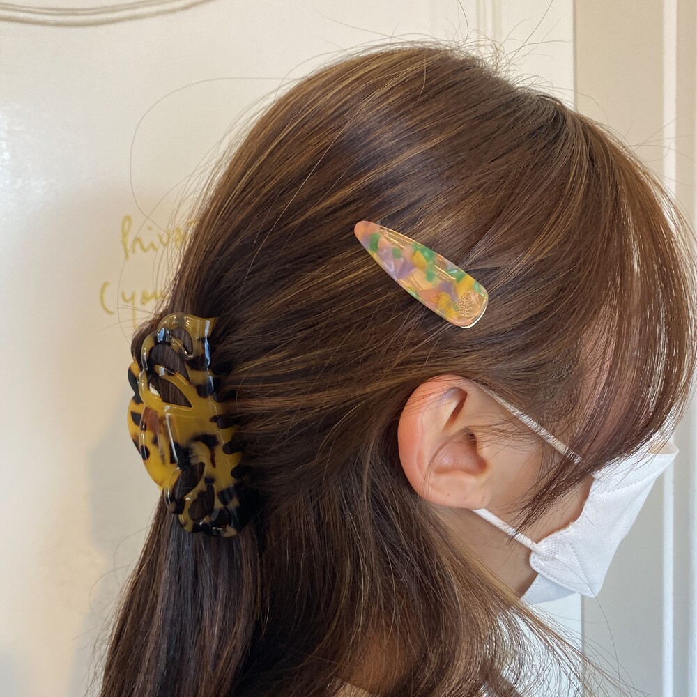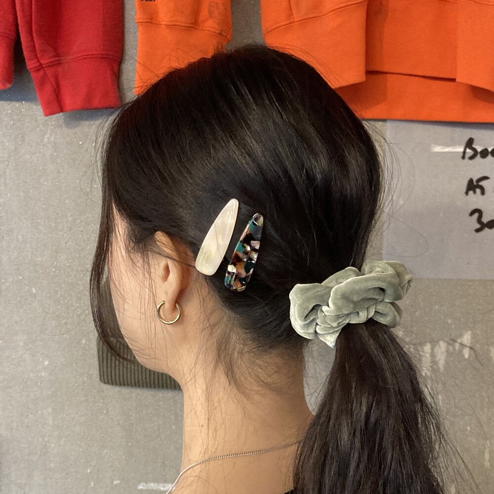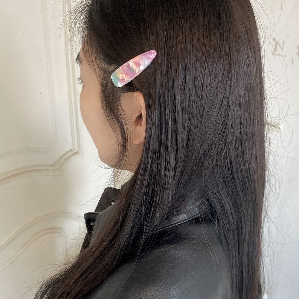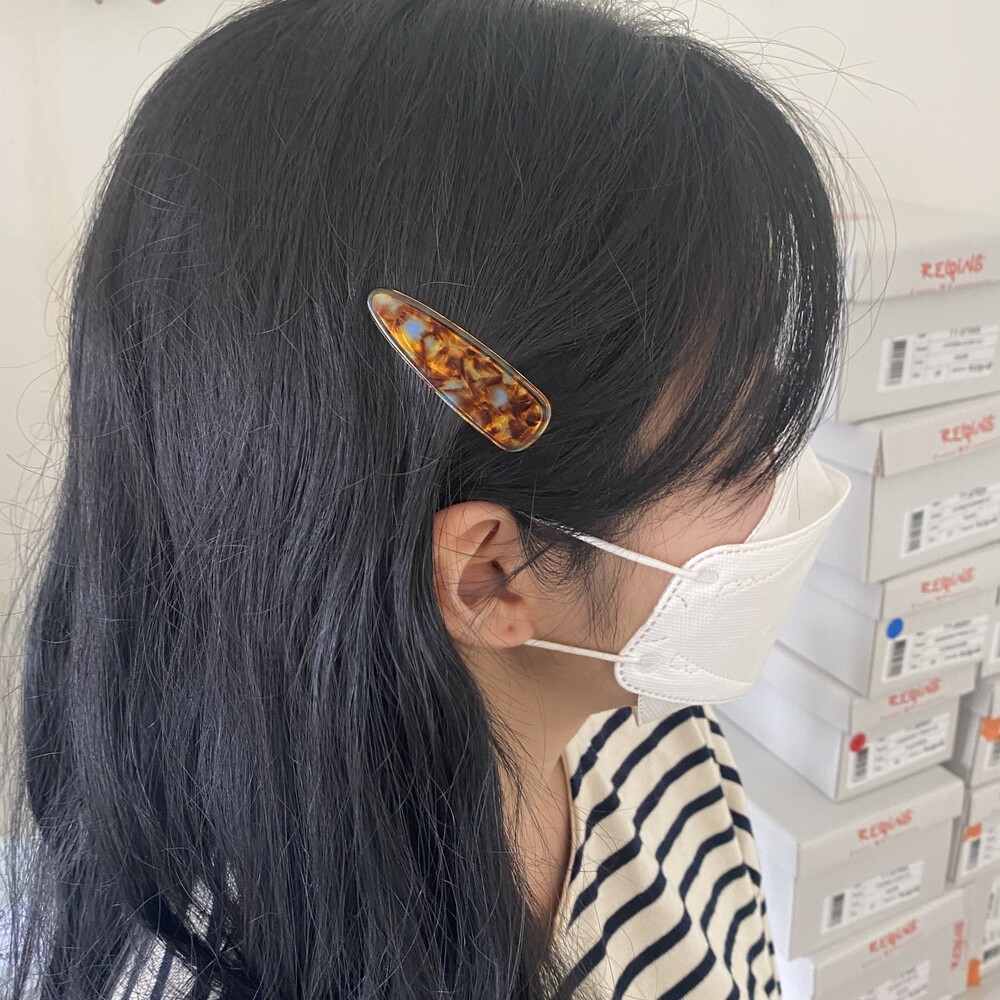 손톱만큼 작은 사이즈는 아니지만 머리에 꽂았을때 딱 예쁜 사이즈감이며 집게 형태로 되어있어 다른 핀들보다 고정력도 좋답니다!