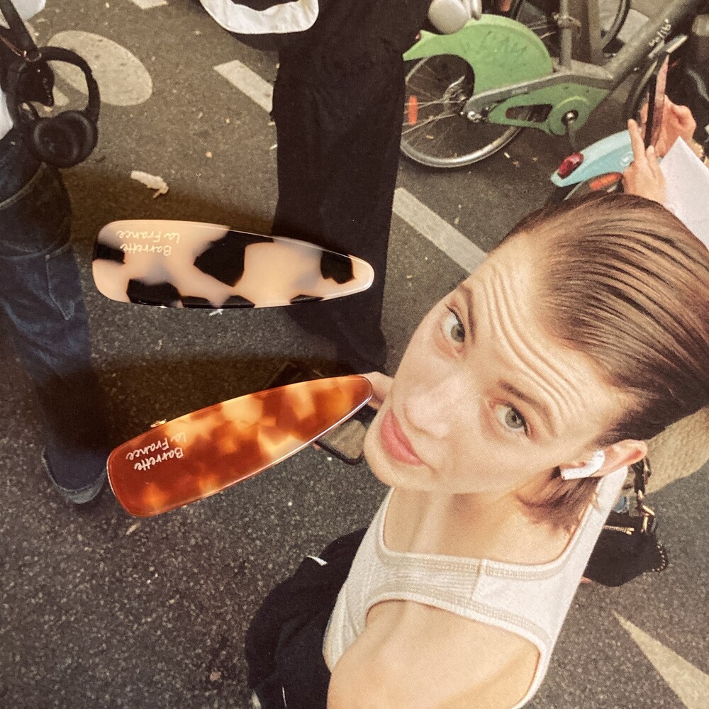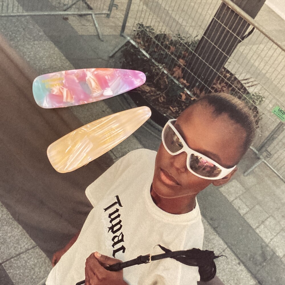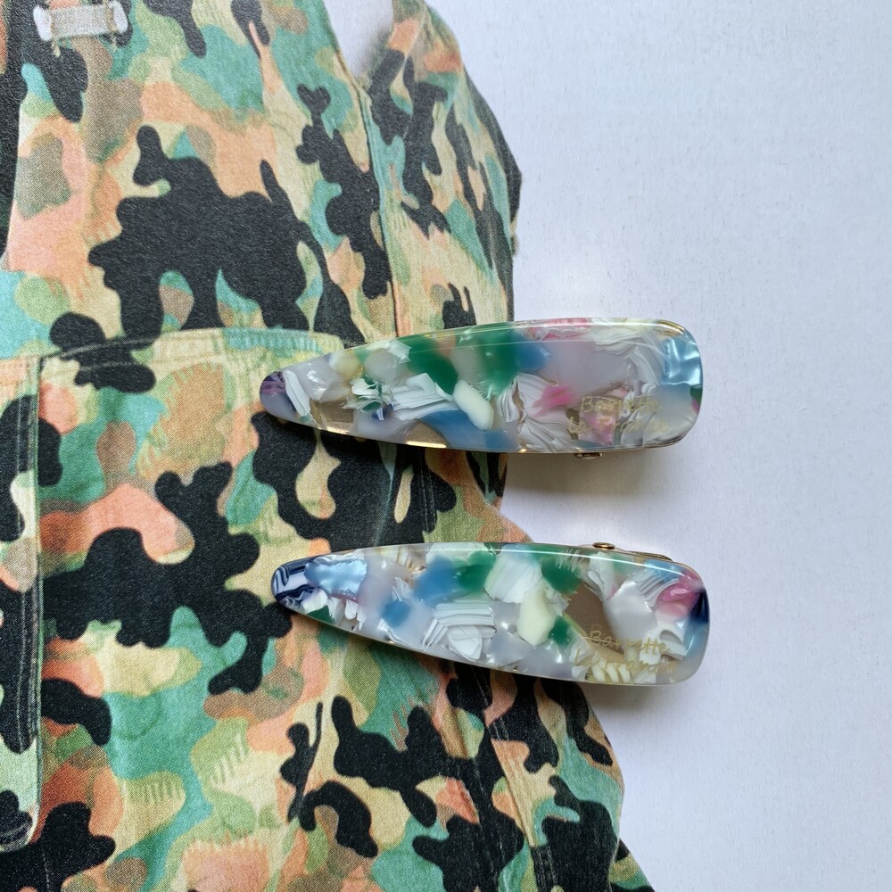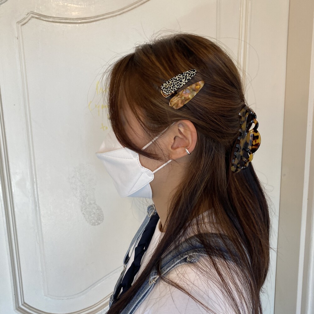 손톱만큼 작은 사이즈는 아니지만 머리에 꽂았을때 딱 예쁜 사이즈감이며 집게 형태로 되어있어 다른 핀들보다 고정력도 좋답니다!