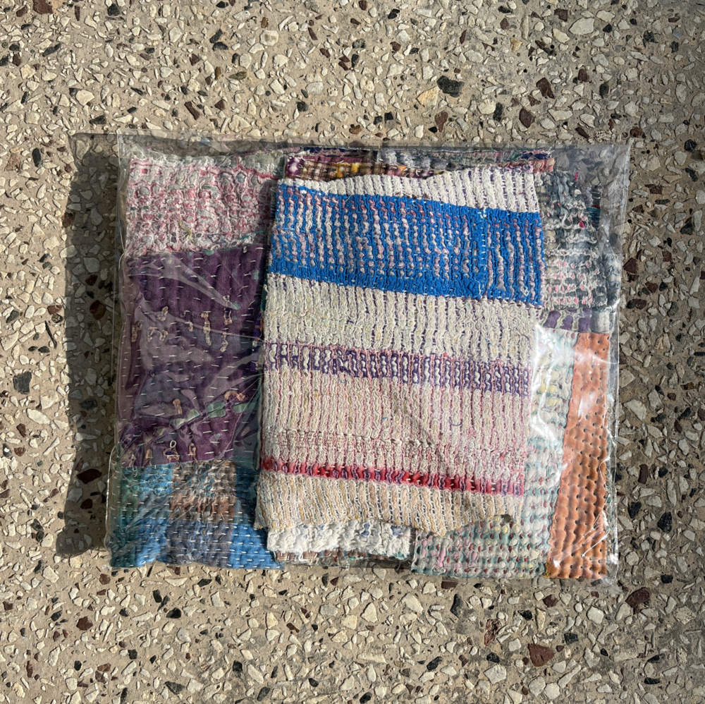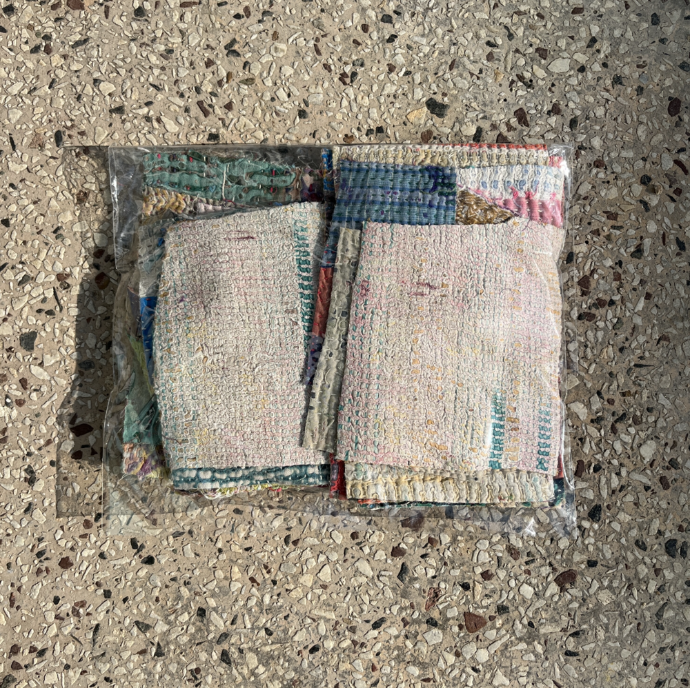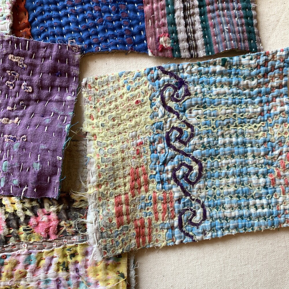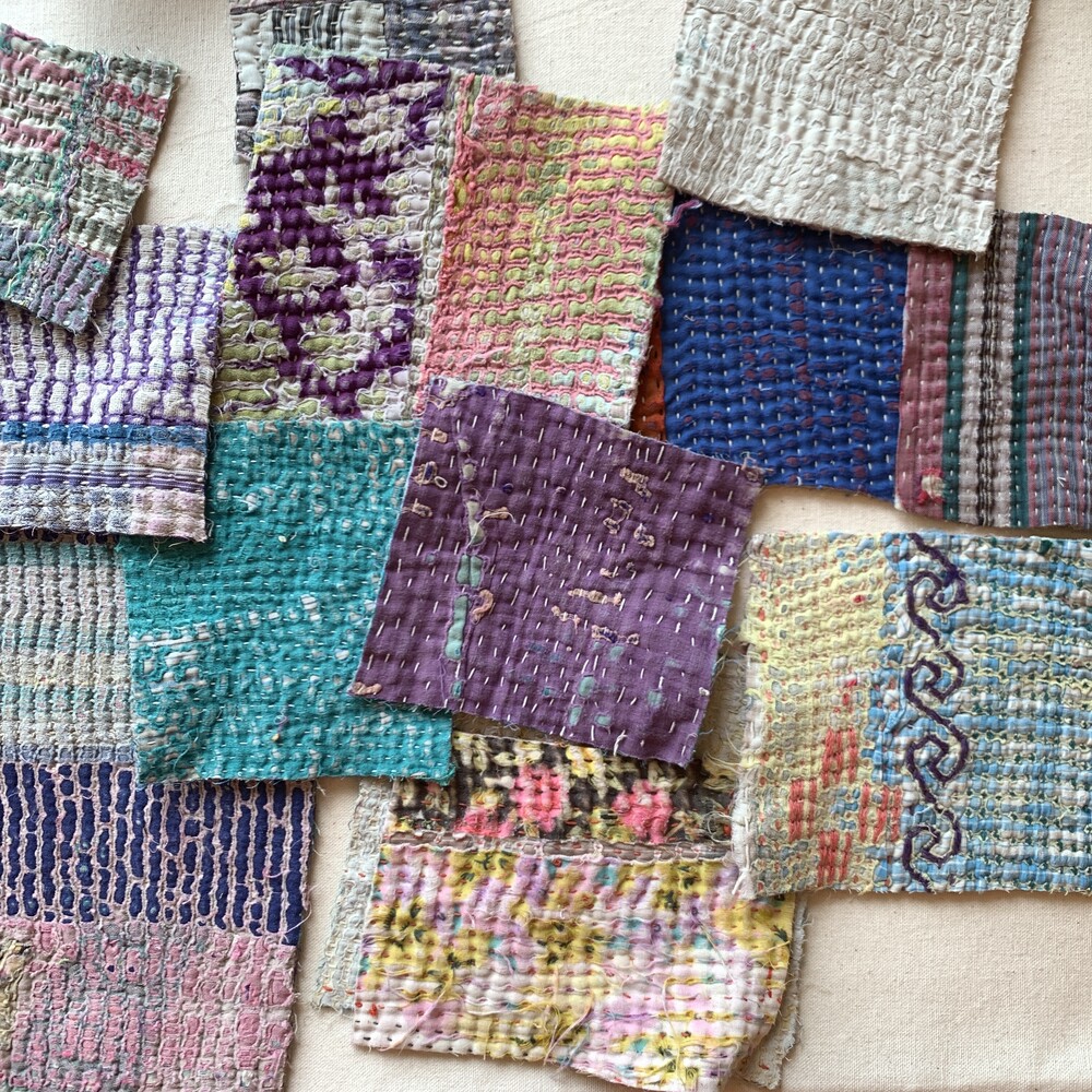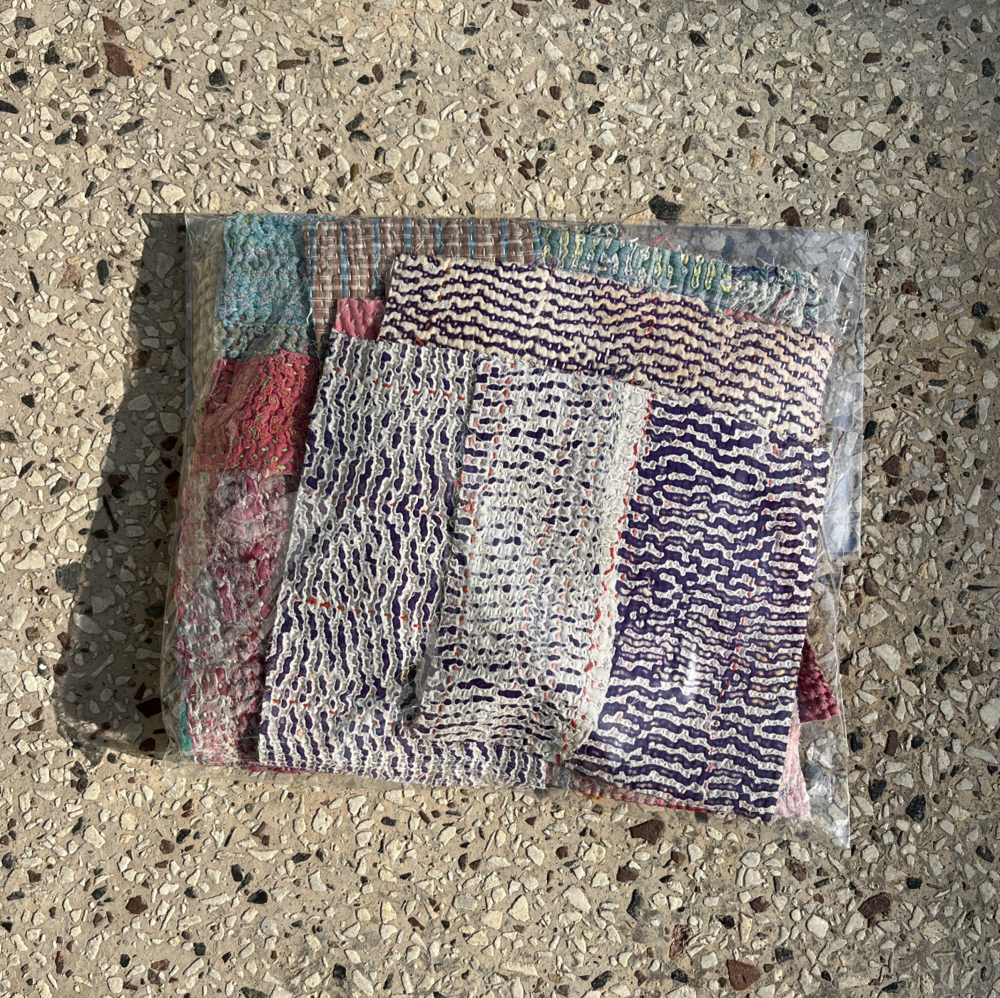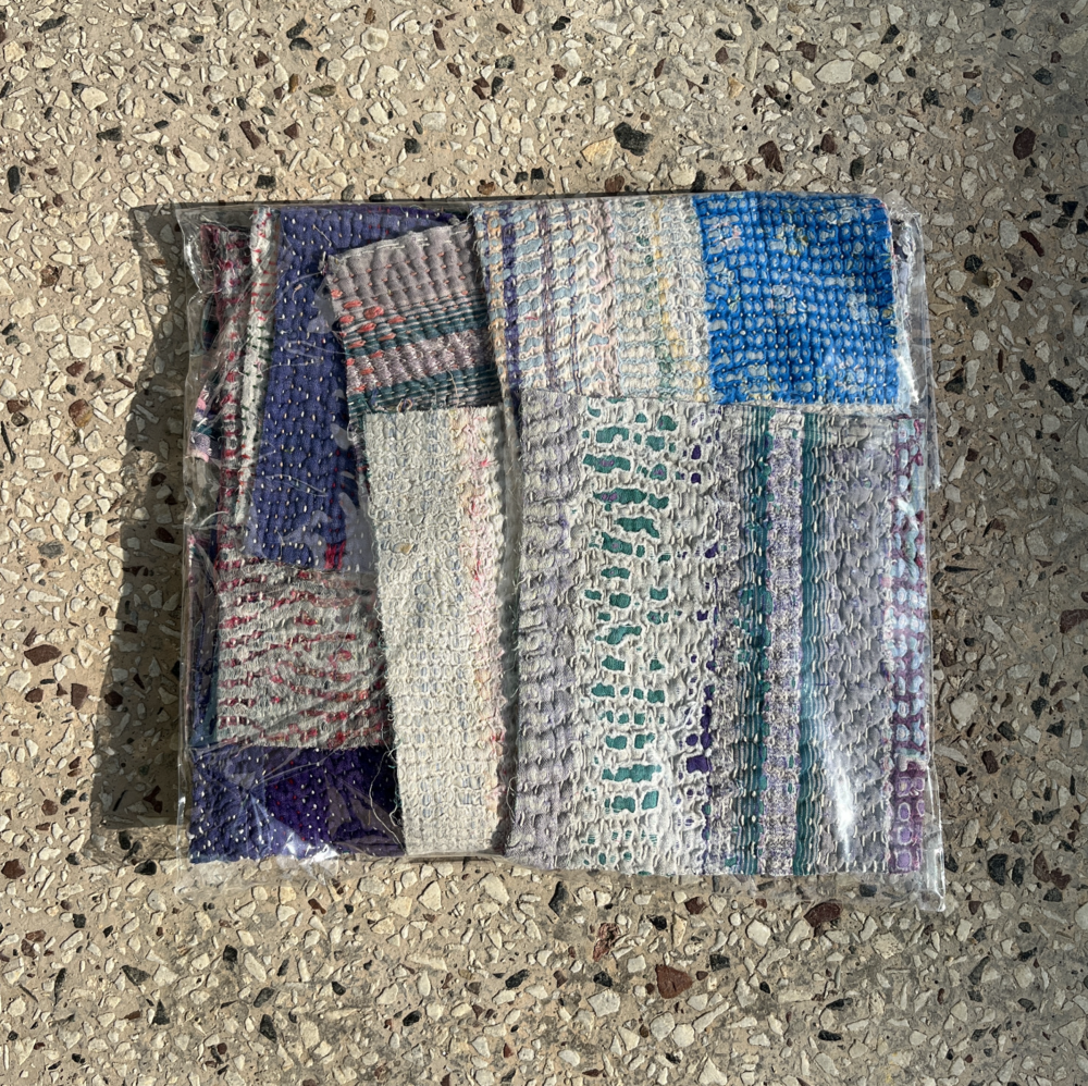 수놓은 천이라는 의미의 칸타(Kantha) 원단이 조각으로 담긴 키트입니다.