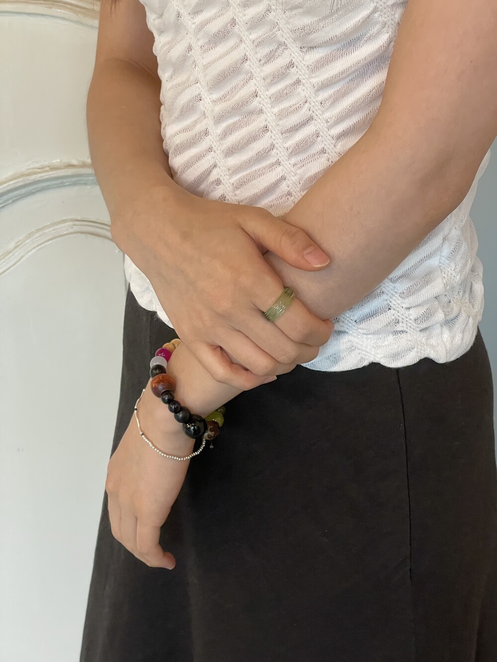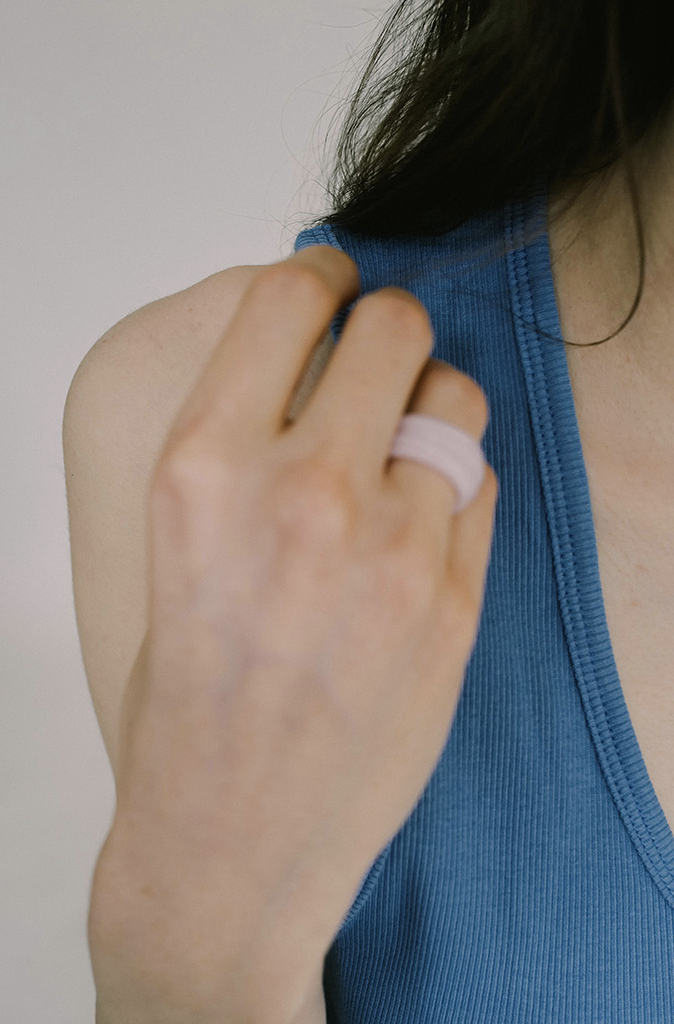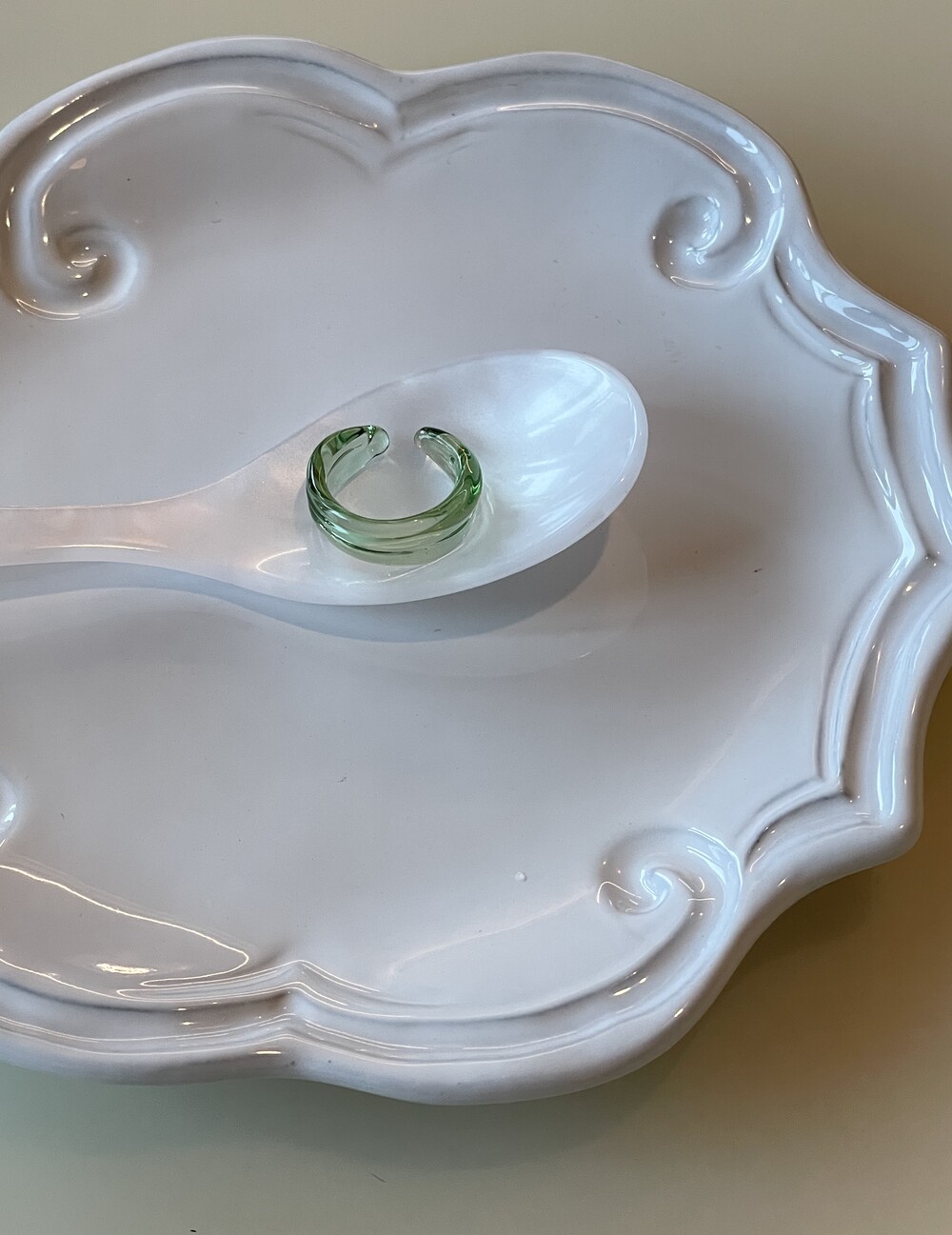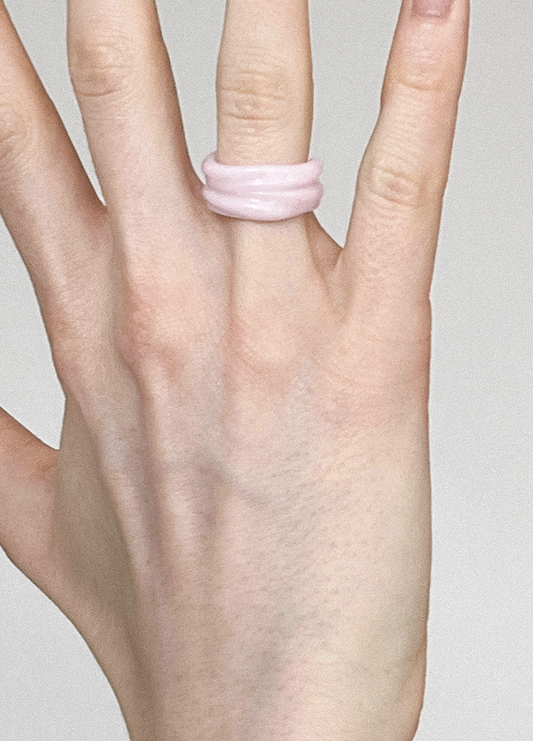 오픈링 느낌으로 한쪽이 뚫려있고 플랫한 디자인으로 유리 반지이지만 착용감이 편리합니다.