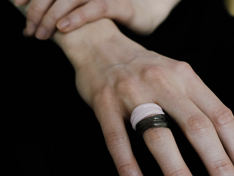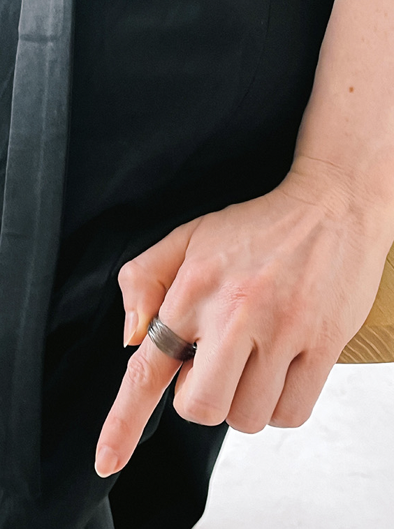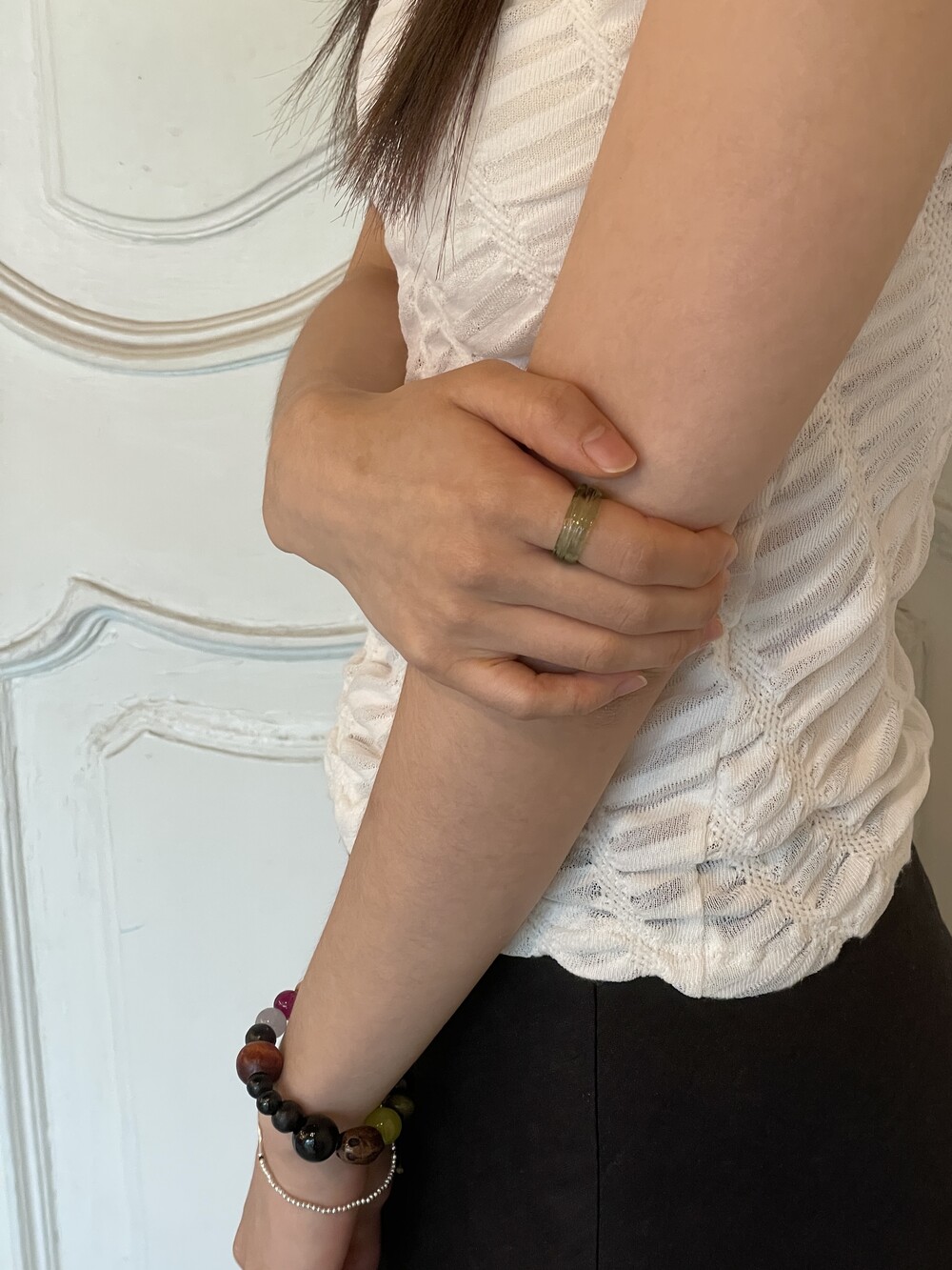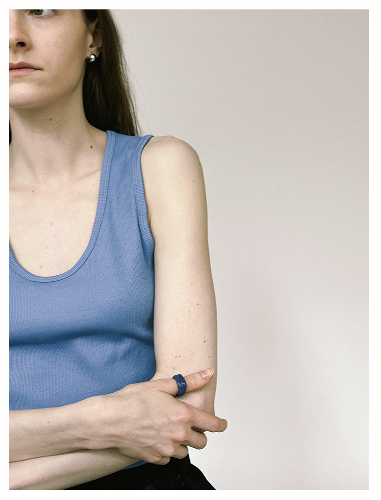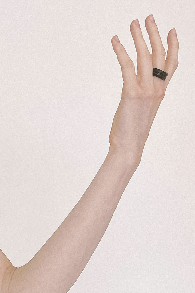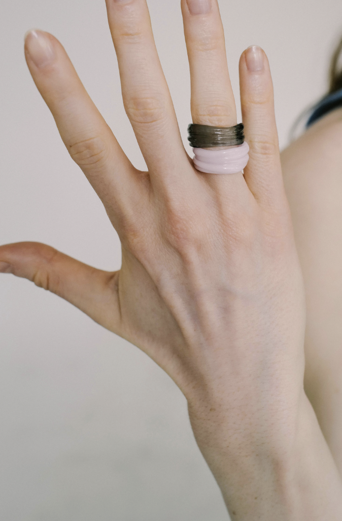오픈링 느낌으로 한쪽이 뚫려있고 플랫한 디자인으로 유리 반지이지만 착용감이 편리합니다.