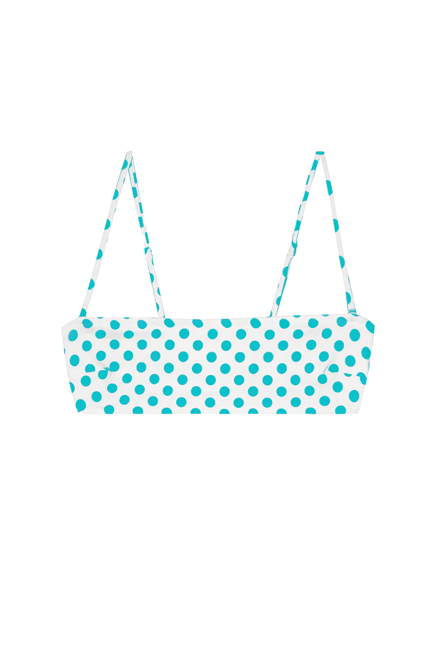 아쿠아와 화이트 폴카 도트 조합의 새로운 튜브 비키니 탑입니다.