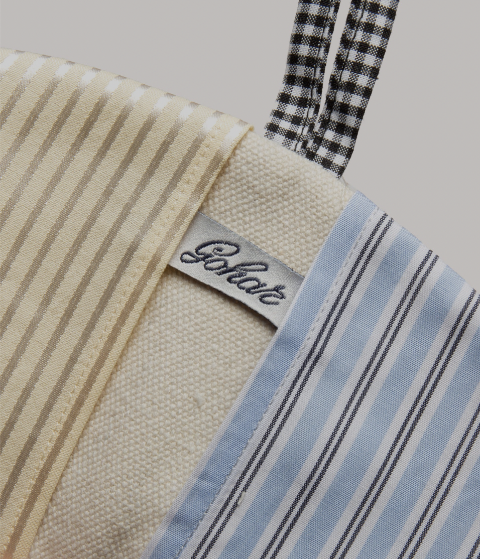 • Fabrication: 100% Cotton base with 90% Cotton 10% Polyester trim.