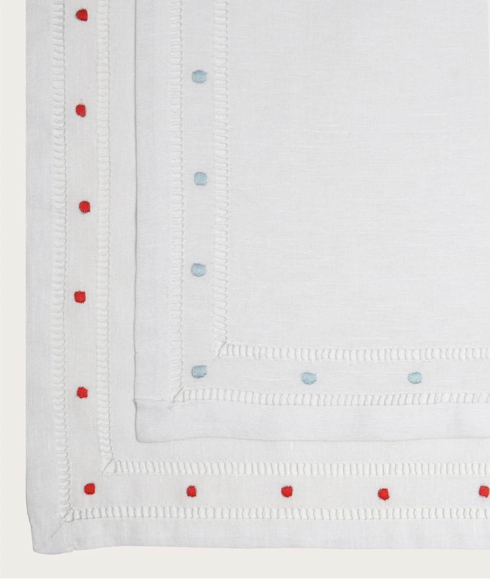 Gohar World - Dinner Napkins, À Jour Stitch and Dot Embroidery (Red)