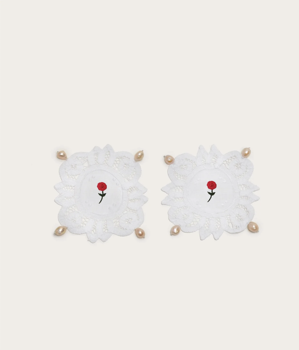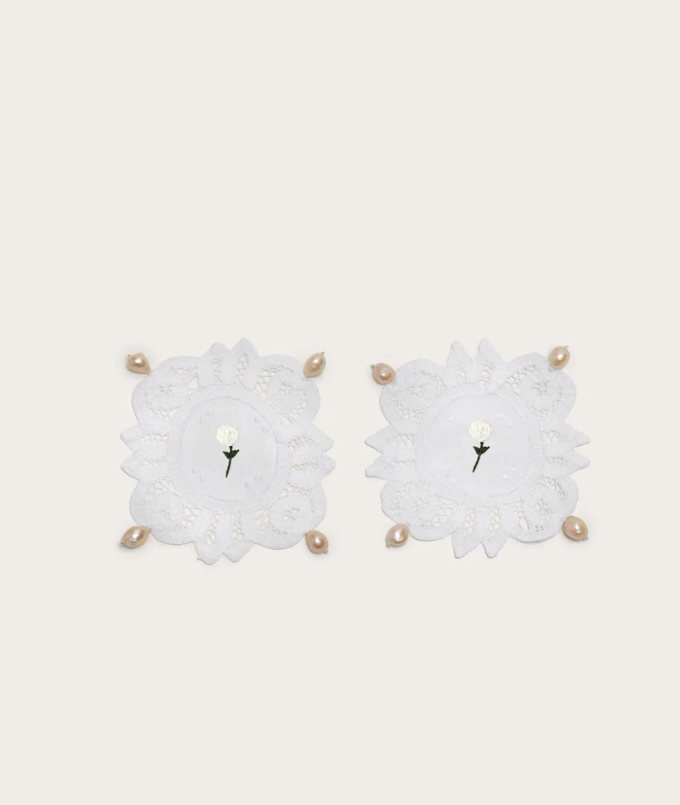Gohar World - Lace Coaster, Pearls with Embroidered Flower (2 Colors)