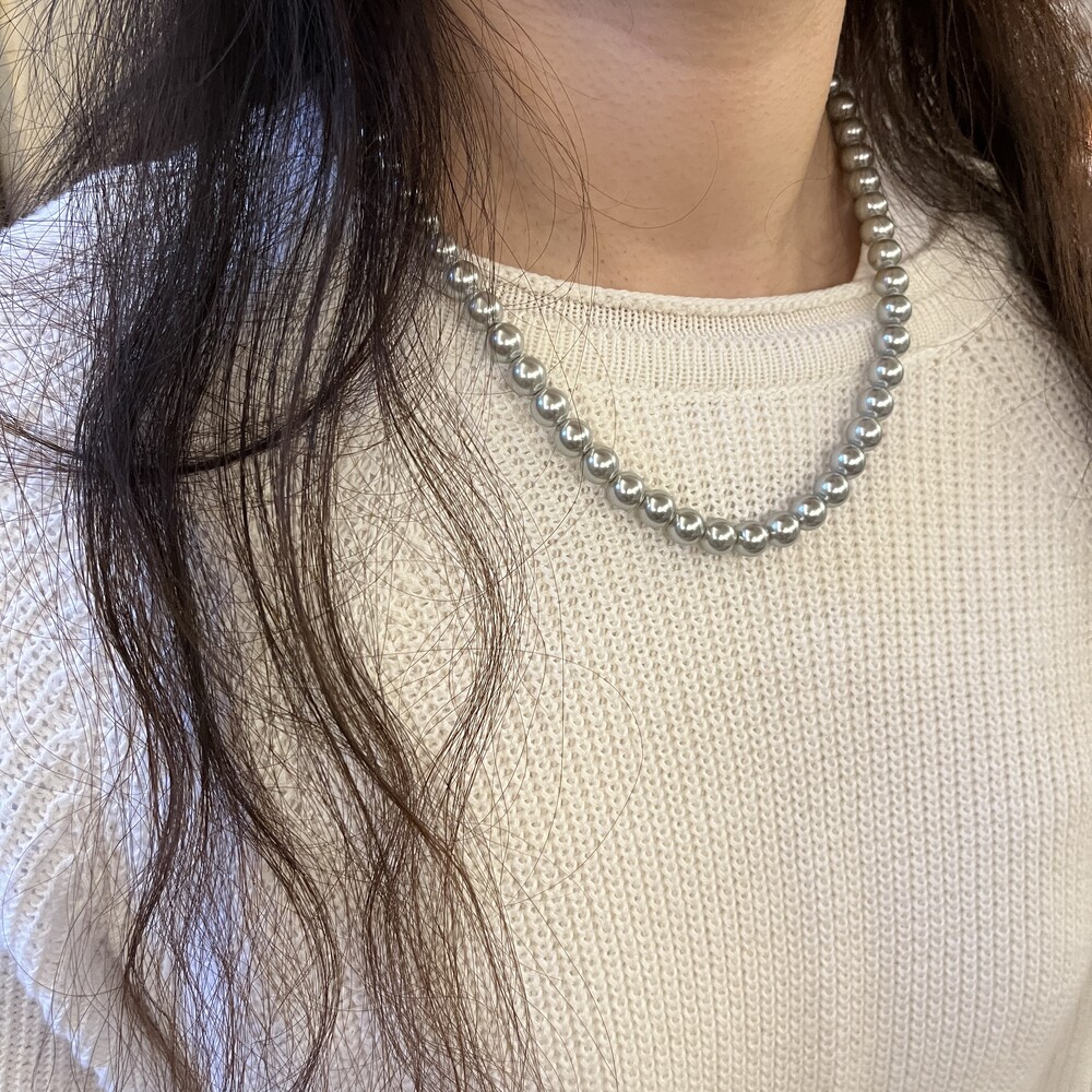 볼드한 크기의 그레이 핵진주로 이루어진 네크리스 소개드립니다.