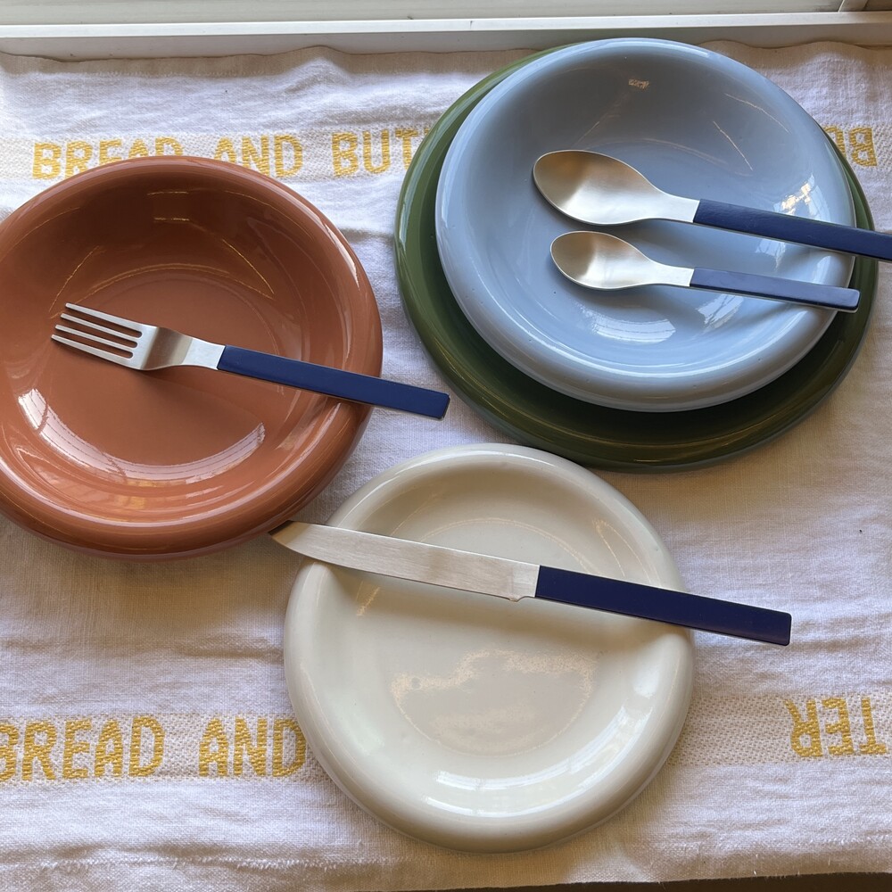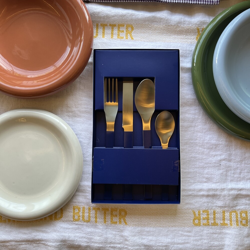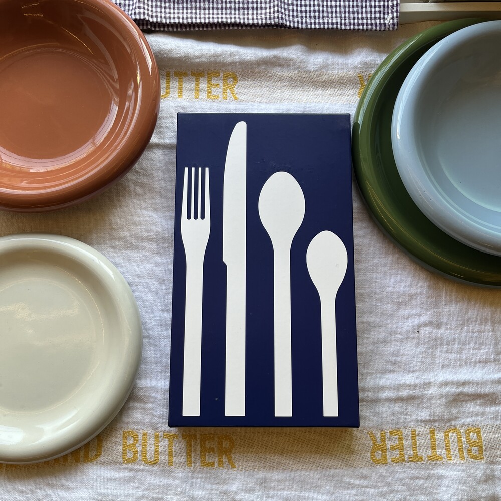 Muller Van Severen이 HAY를 위해 디자인한 MVS Cutlery는 미니멀한 미학과 색상 사용을 독특하고 기능적인 커트러리 세트와 결합했습니다. 핸들이 도색 브러시드 스테인리스 스틸로 만들어진 이 식기 세트는 나이프, 포크, 스푼 및 티스푼이 함께 4개의 종류로 구성되어 있으며, 식사 시간에 우아함과 독창성을 제공하기 위해 색상을 일치시키거나 대조하여 사용할 수 있습니다.