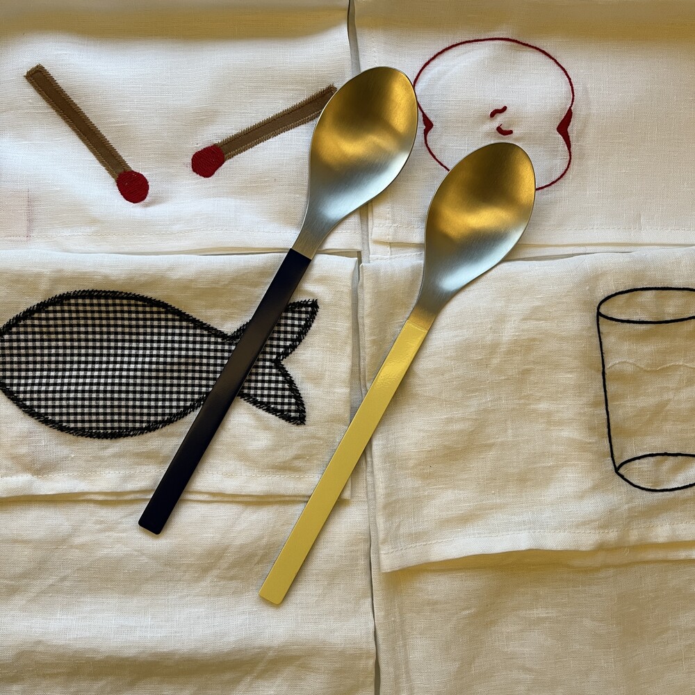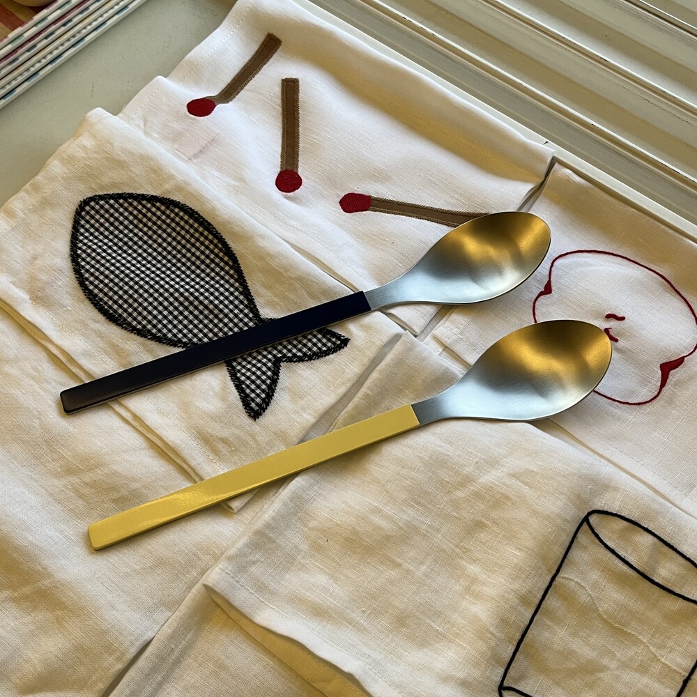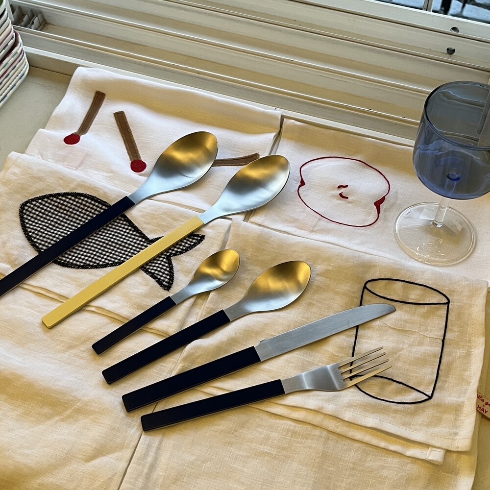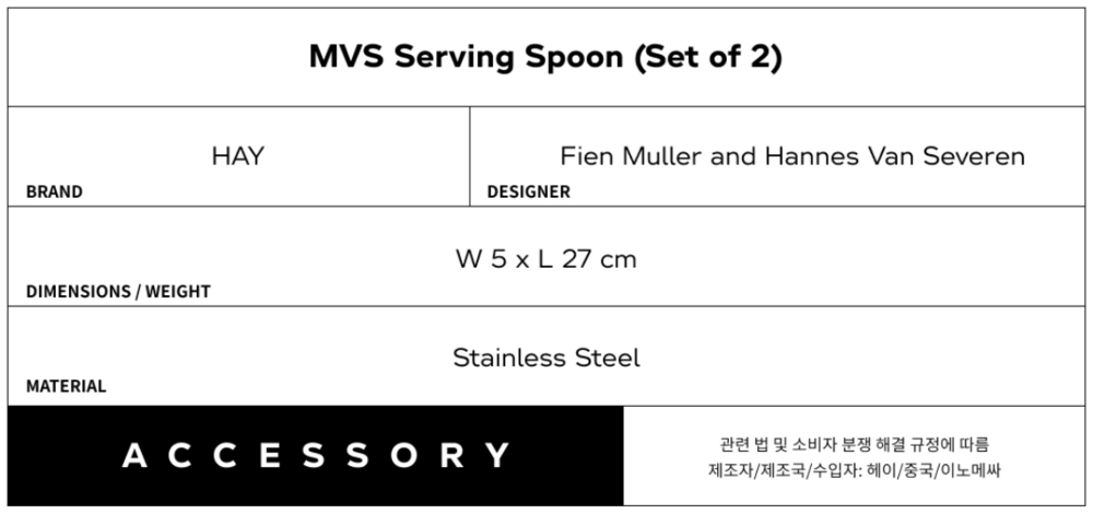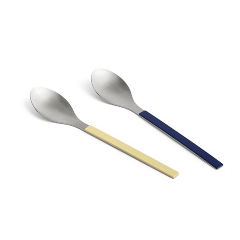 Muller Van Severen이 HAY를 위해 디자인한 MVS Cutlery는 미니멀한 미학과 색상 사용을 독특하고 기능적인 커트러리 세트와 결합했습니다. 핸들이 도색 브러시드 스테인리스 스틸로 만들어진 이 식기 세트는 나이프, 포크, 스푼 및 티스푼이 함께 4개의 종류로 구성되어 있으며, 식사 시간에 우아함과 독창성을 제공하기 위해 색상을 일치시키거나 대조하여 사용할 수 있습니다.