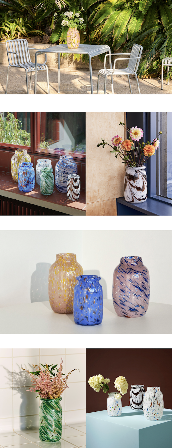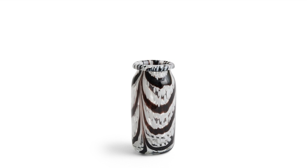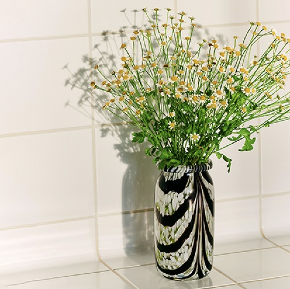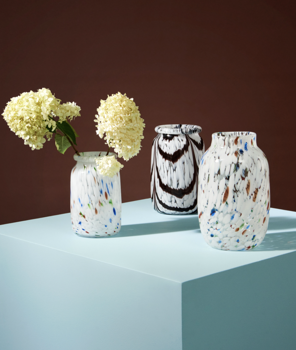 여러 겹의 컬러 유리 점을 포함하는 특수 유리 불기 기술을 사용하여 수작업으로 제작한 스플래시 꽃병은 독특한 소용돌이 패턴이 특징입니다. 다양한 디자인과 크기로 제공되는 꽃병은 꽃을 전시하는 데나 장식용으로 모두 사용할 수 있습니다.
