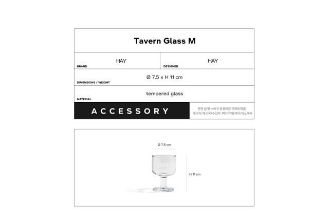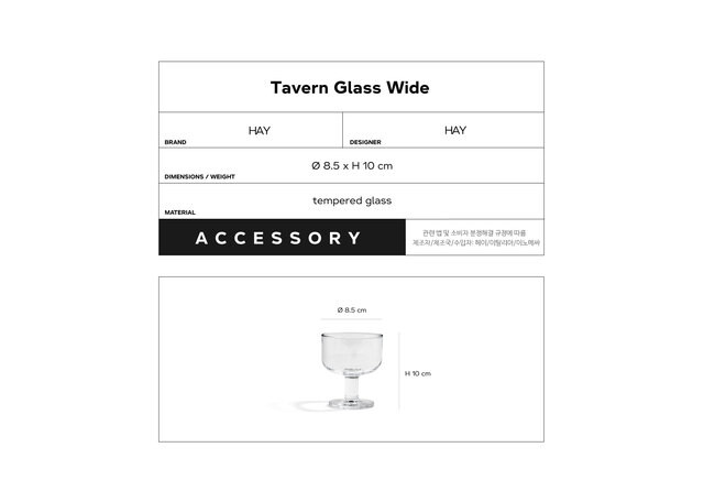 태번(Tavern)은 심플한 매력을 지닌 다기능 유리제품 입니다. 튼튼한 품질의 무거운 무게의 유리로 제작된 잔들은 두툼한 스템(Stem)과 균형 잡힌 모양을 가지고 있습니다. 세 가지 사이즈로 준비했으며 와인, 물 및 기타 음료는 물론 과일, 아이스크림 및 디저트용으로 다양하게 활용할 수 있습니다.
