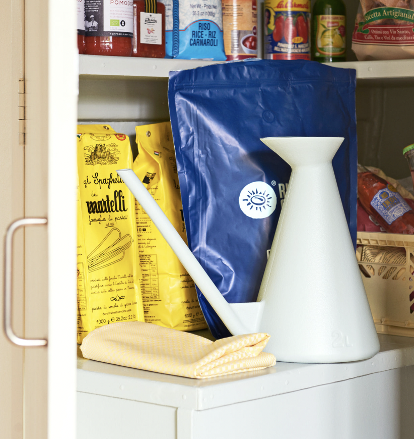 손잡이가 없는 디자인으로 길쭉한 주둥이를 가진 Shane Schneck 디자인의 Watering Can입니다.