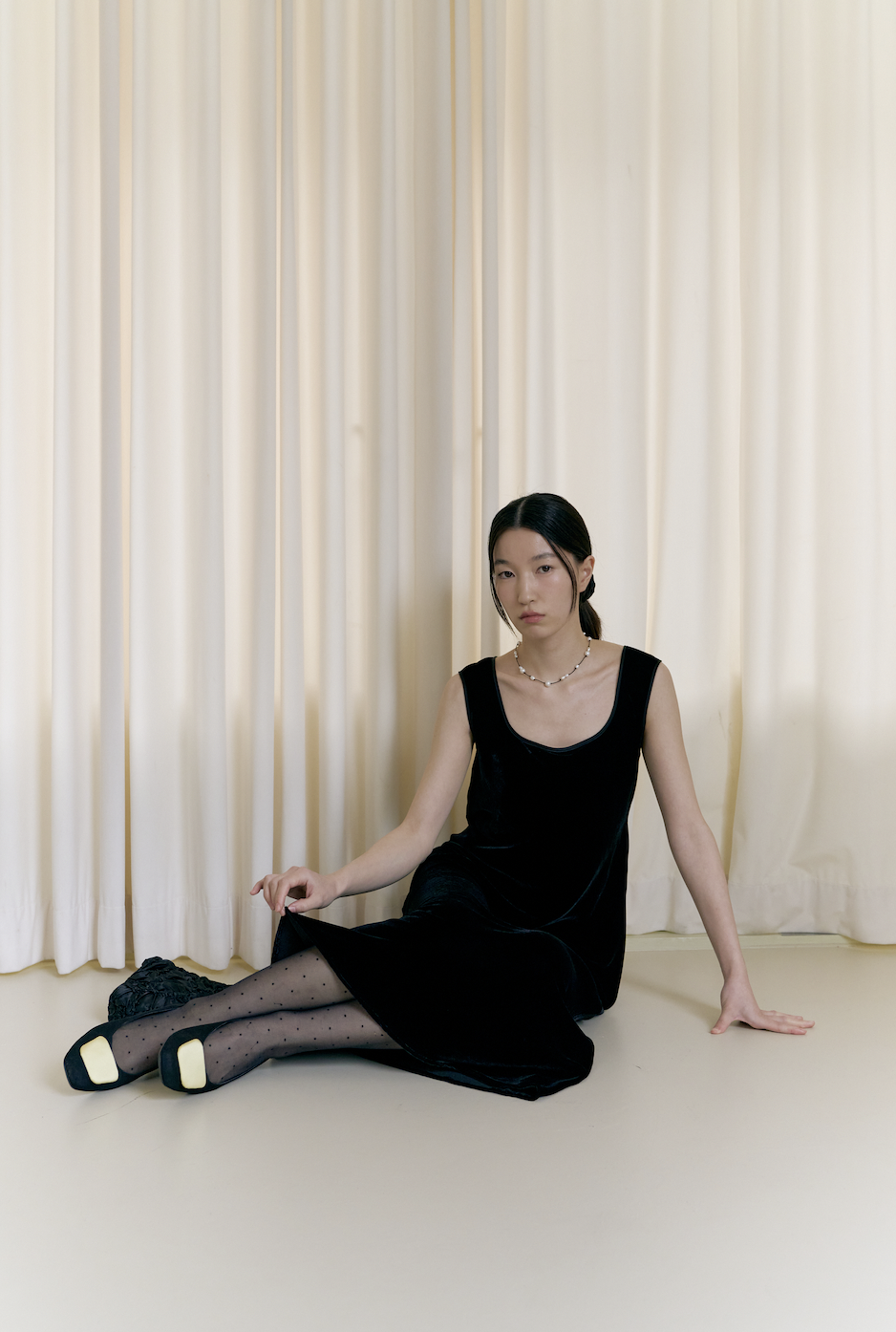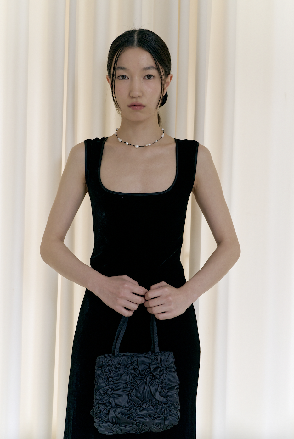 시대를 초월하여 오래 기억될 우아한 디자인으로 제작되었으며, 부드러운 벨벳 원단이 바디를 자연스럽게 감싸 편안하게 시착하실 수 있습니다.
