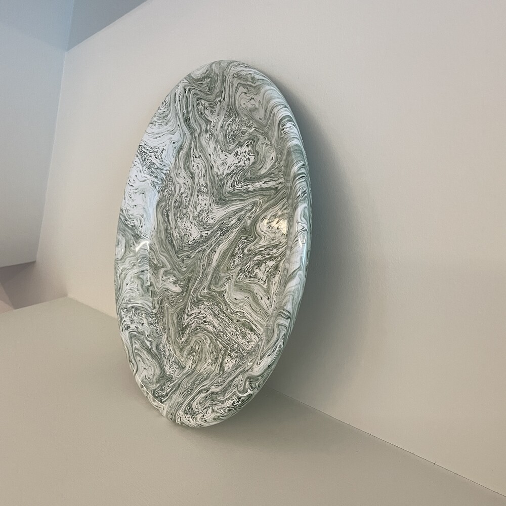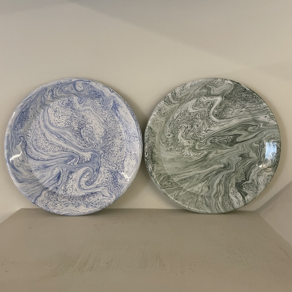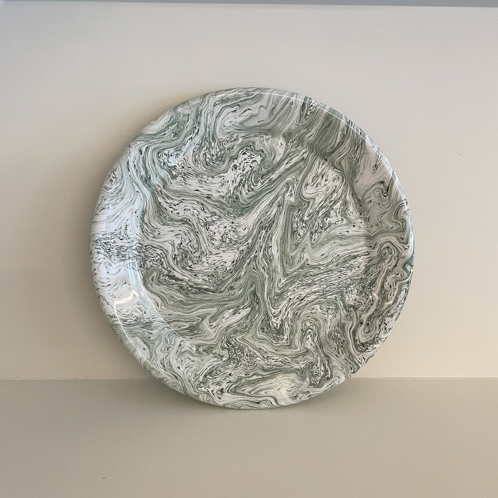 HAY’S Soft Ice Series is made in durable enamelled steel with a marble pattern. The dinner plate is available with green pattern.