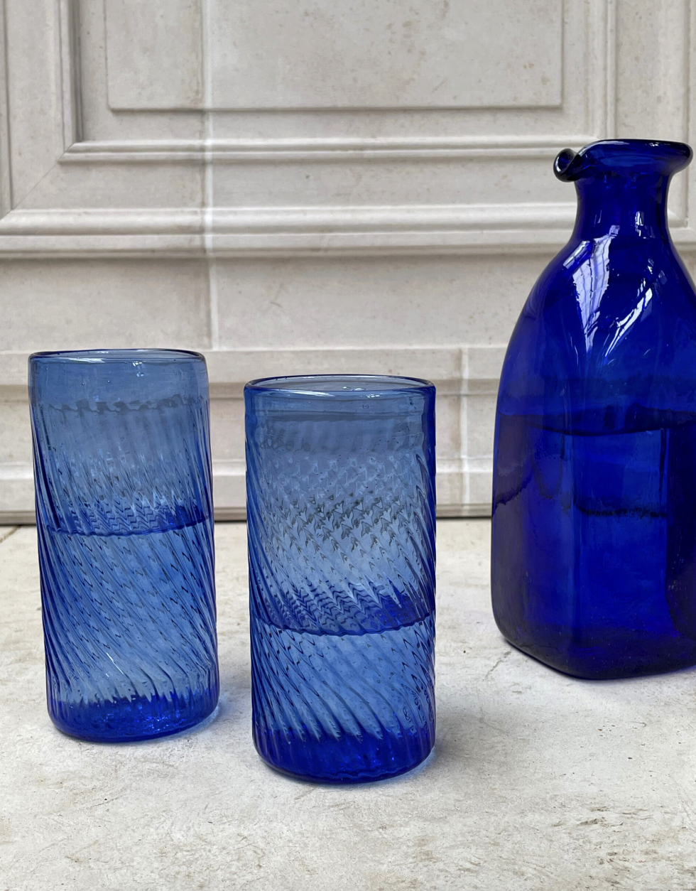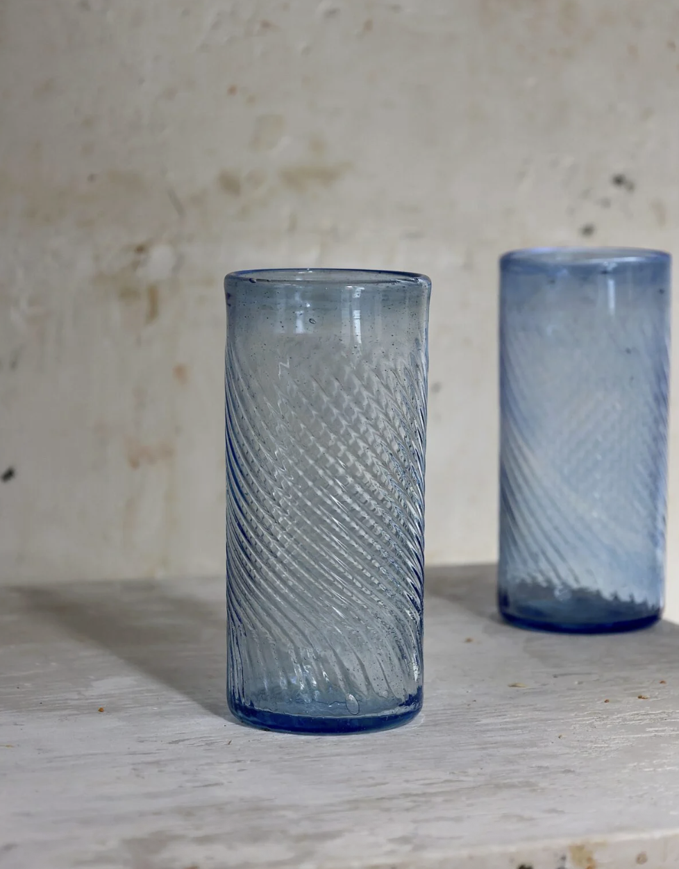 유리잔에 꼬인 능선 무늬를 만드는 방법은 뜨거운 녹은 유리 덩어리를 스파이크가 달린 틀에 부어 제작되었습니다.