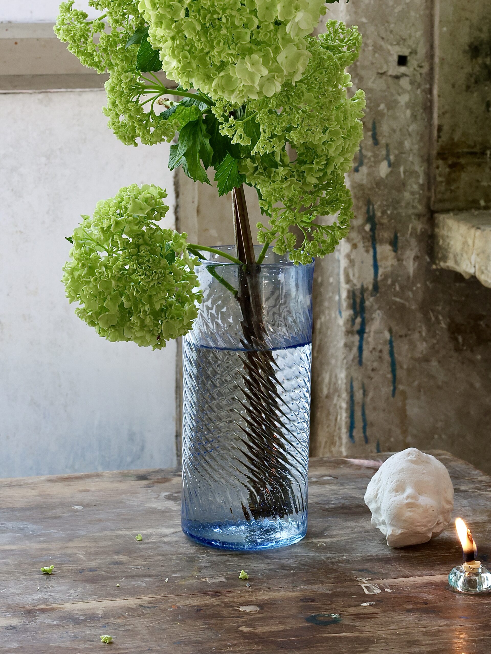 재활용 유리를 사용하여 저희의 숙련된 유리 장인들이 입으로 불어서 제작합니다.