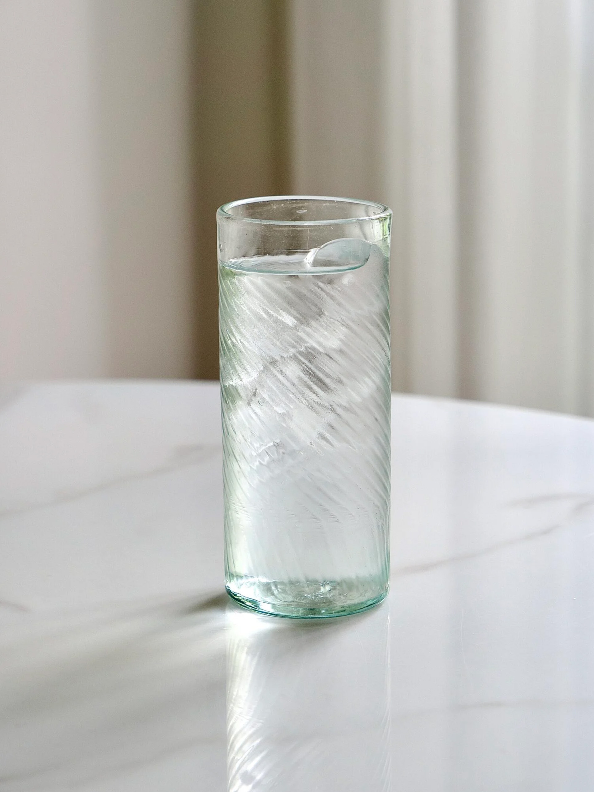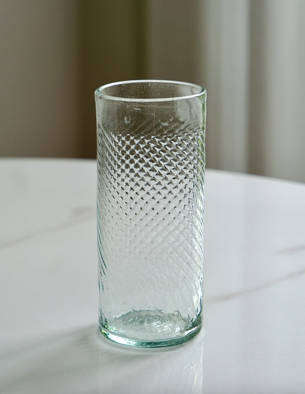 유리잔에 꼬인 능선 무늬를 만드는 방법은 뜨거운 녹은 유리 덩어리를 스파이크가 달린 틀에 부어 제작되었습니다.