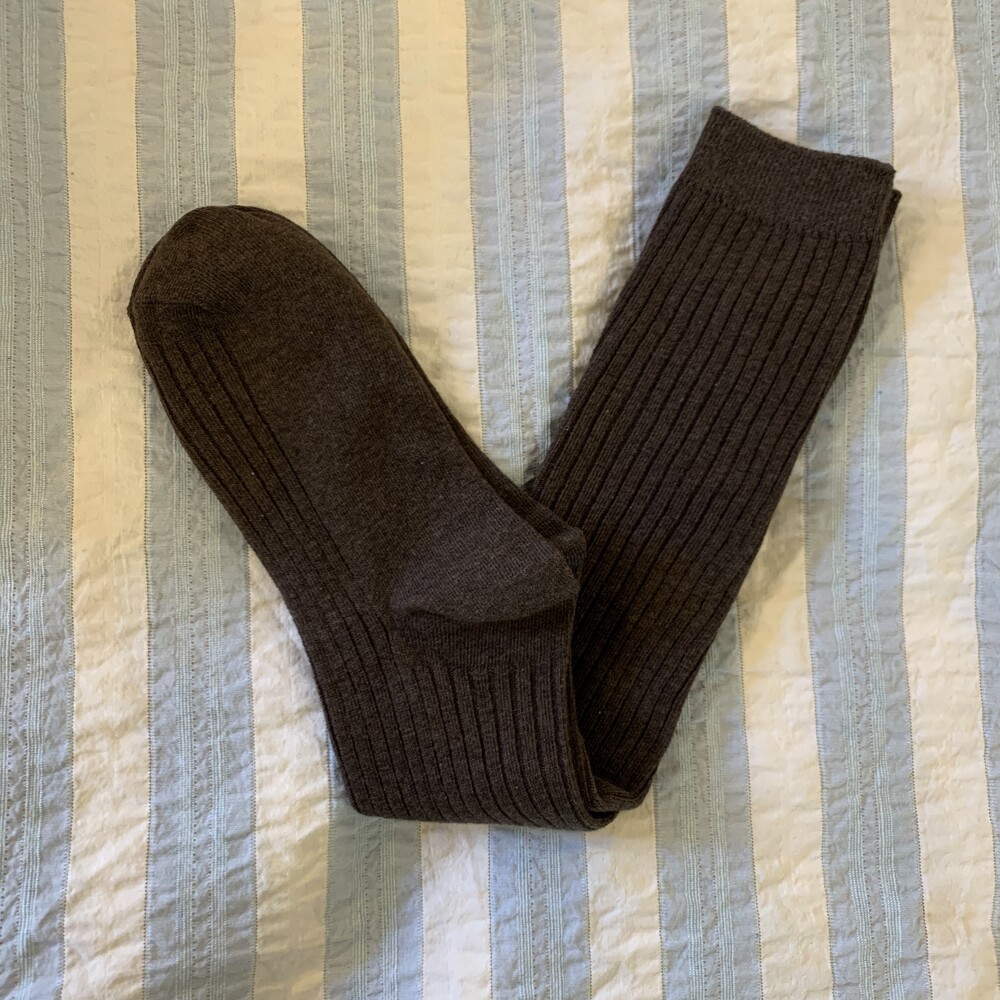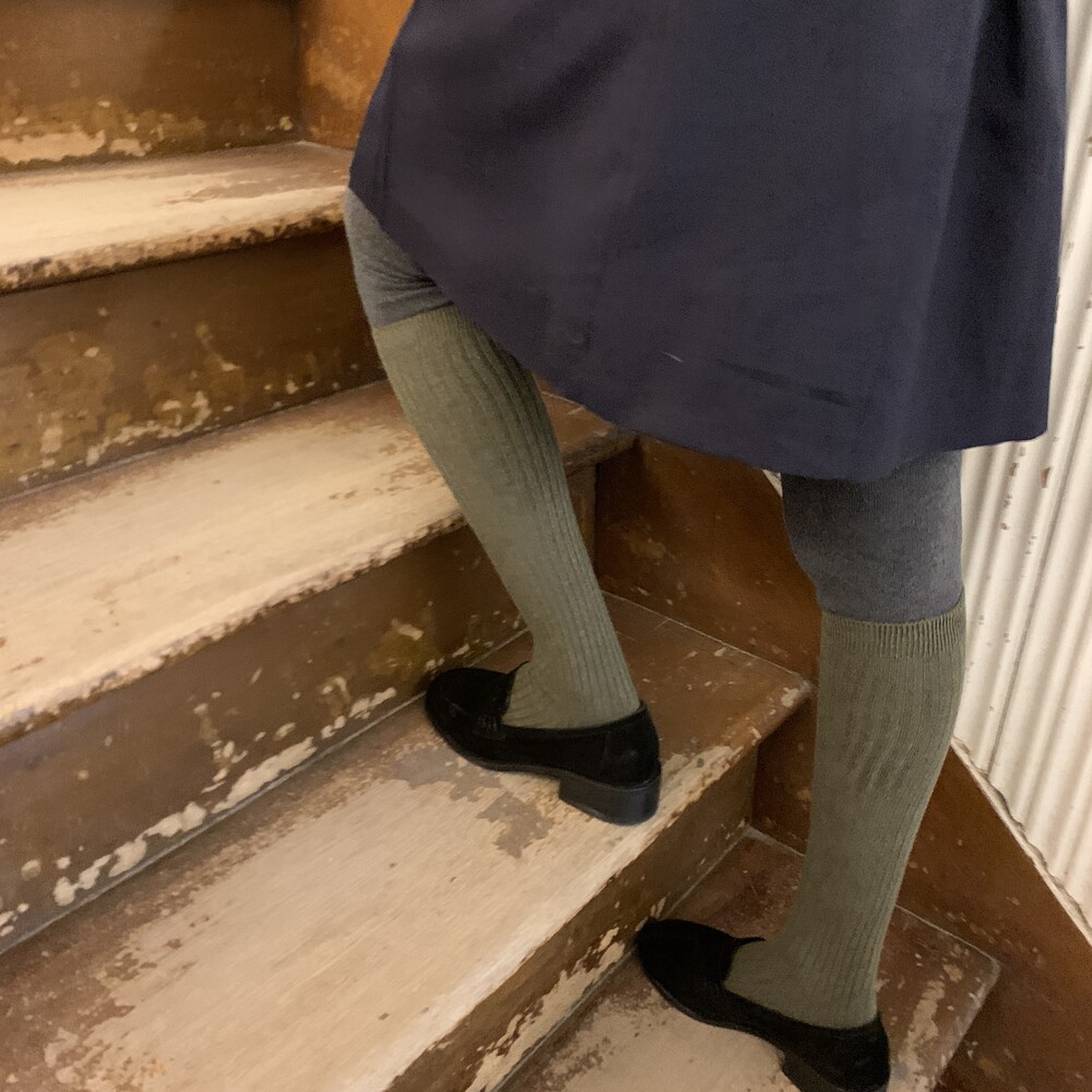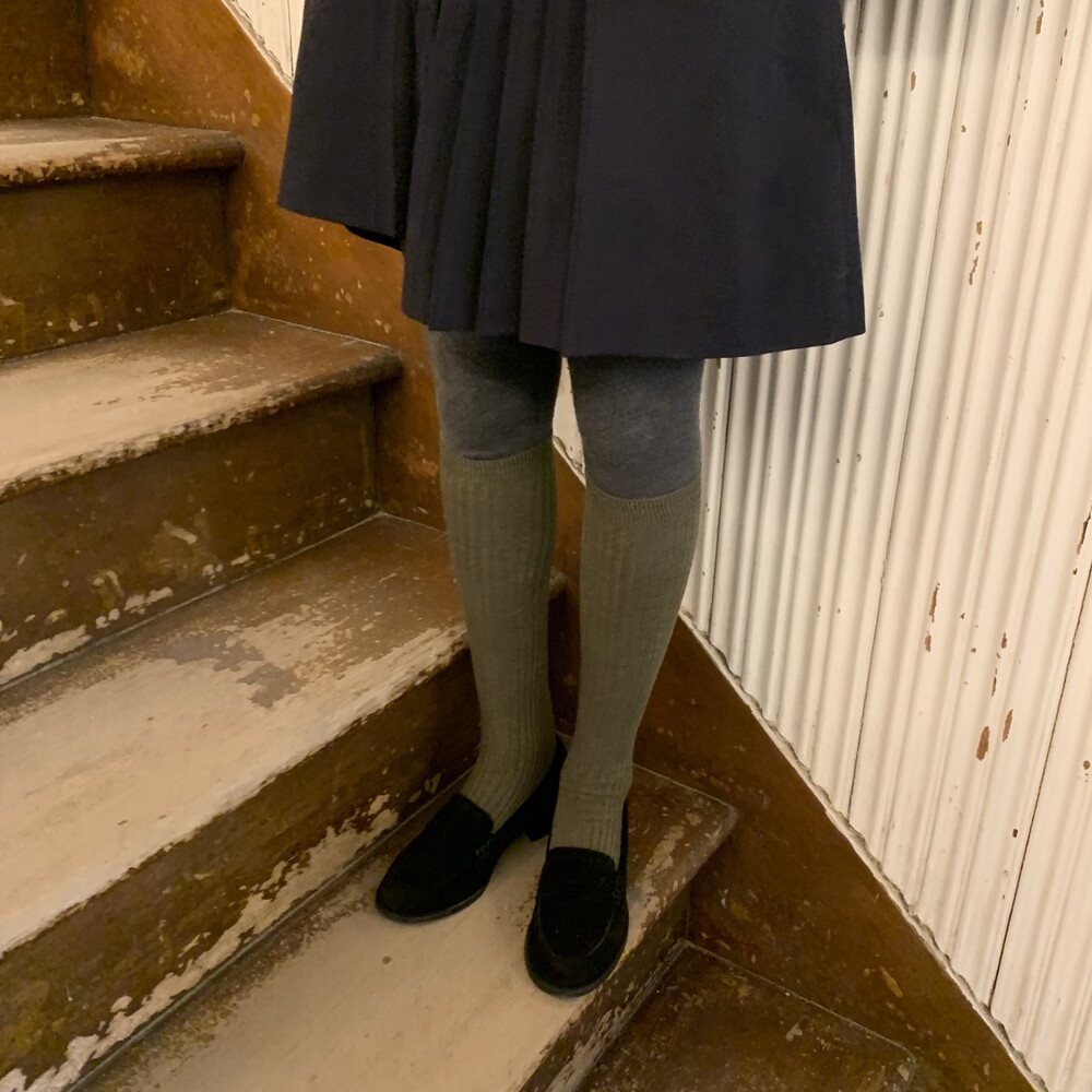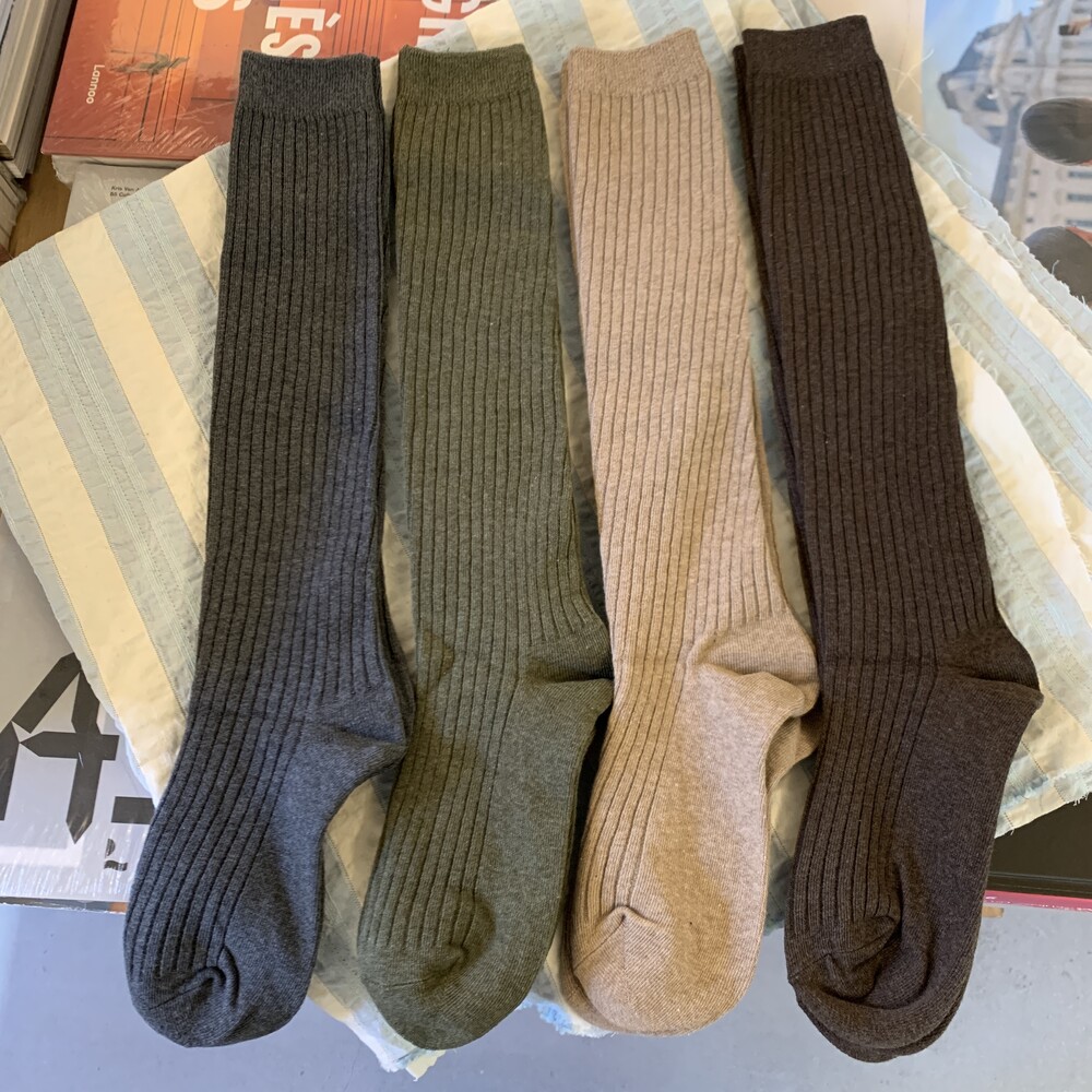 무릎 바로 아래까지 오는 니삭스로, 적당한 간격의 골지감은 다리를 보다 길어 보이게 한답니다.