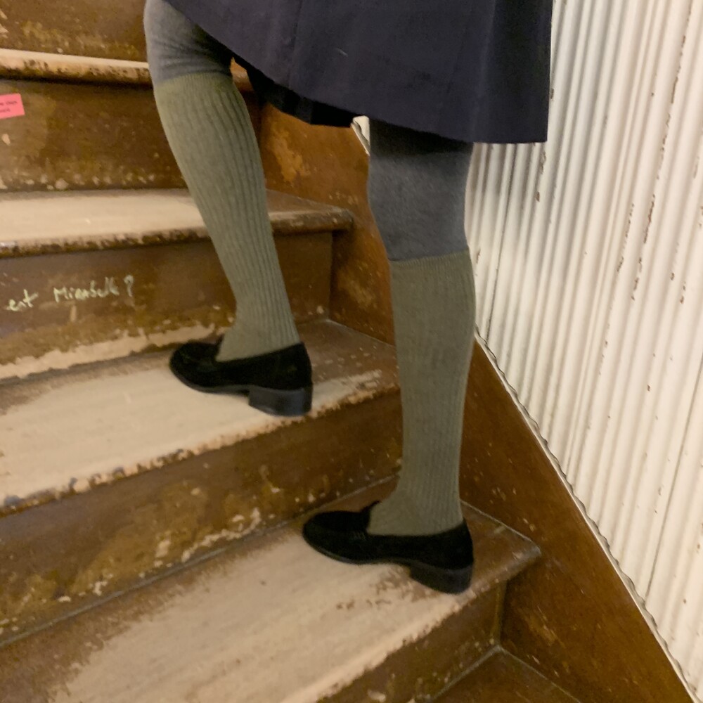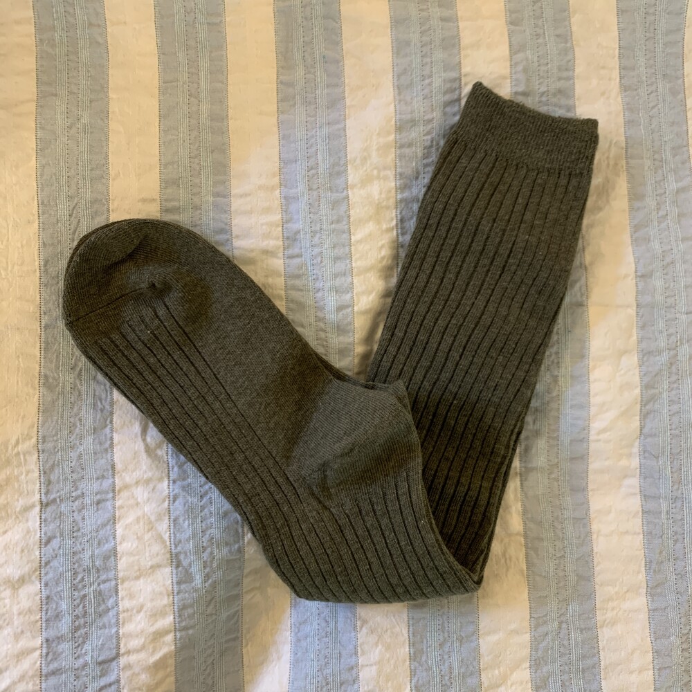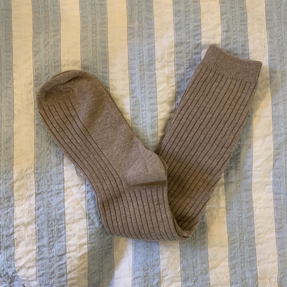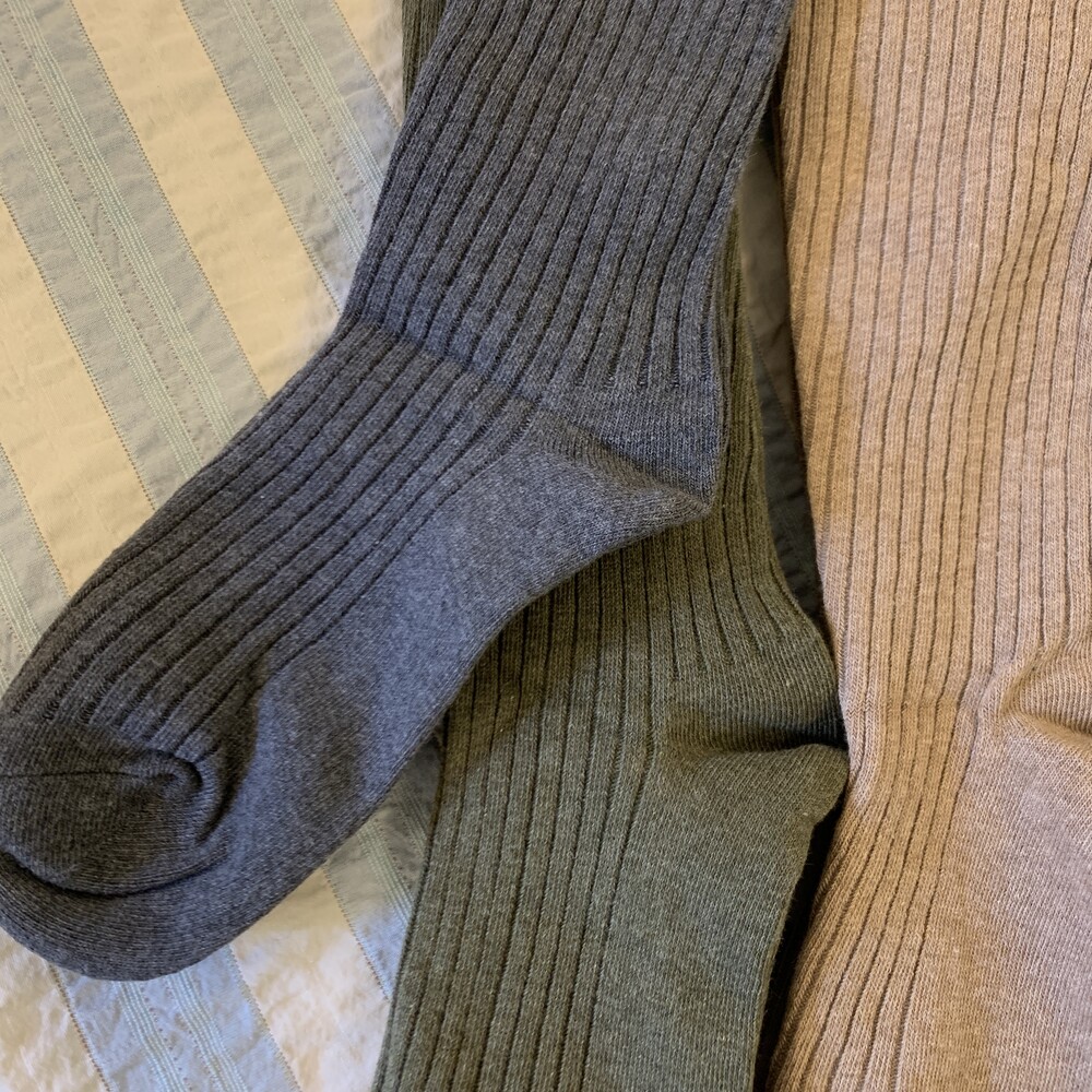 무릎 바로 아래까지 오는 니삭스로, 적당한 간격의 골지감은 다리를 보다 길어 보이게 한답니다.
